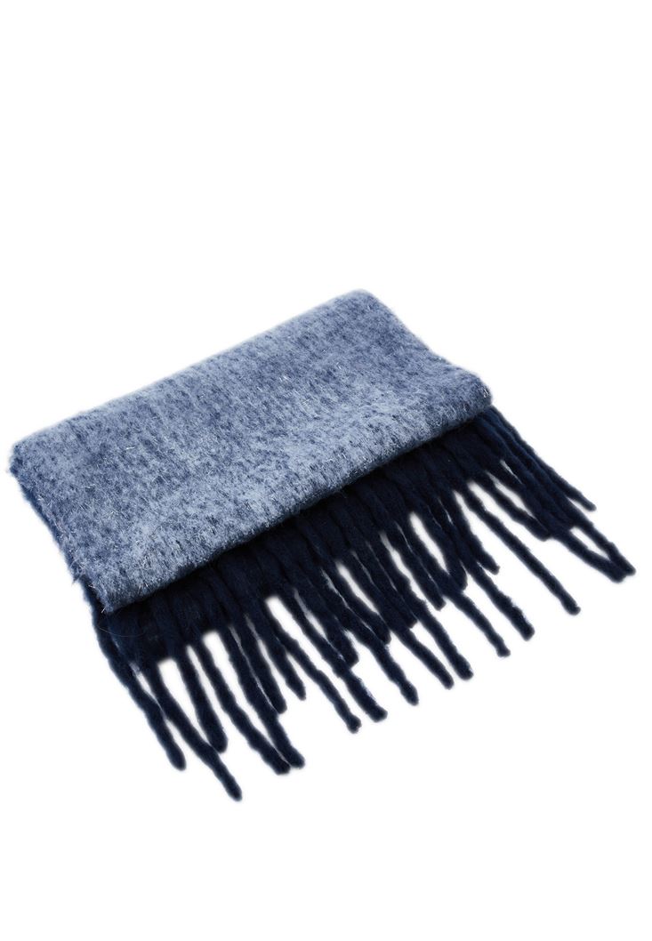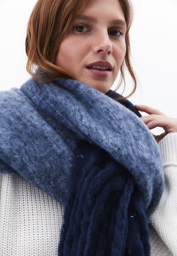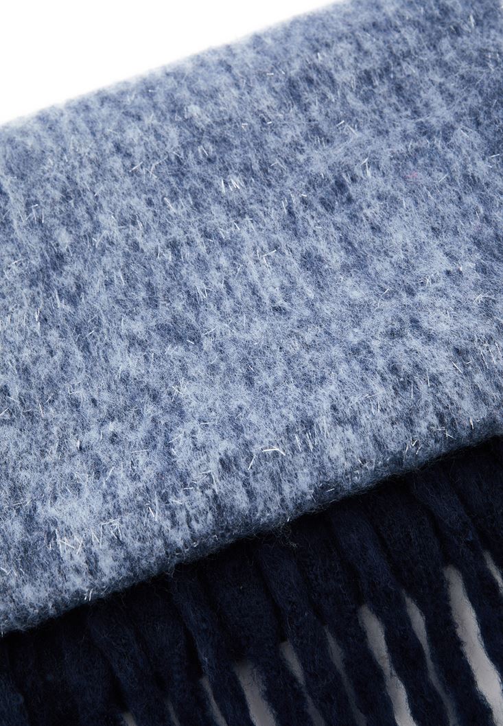Mavi Püskül Detaylı Kalın Şal