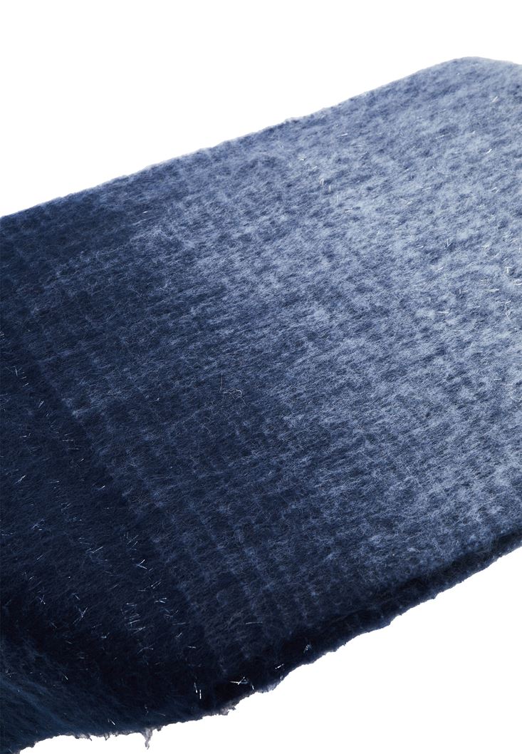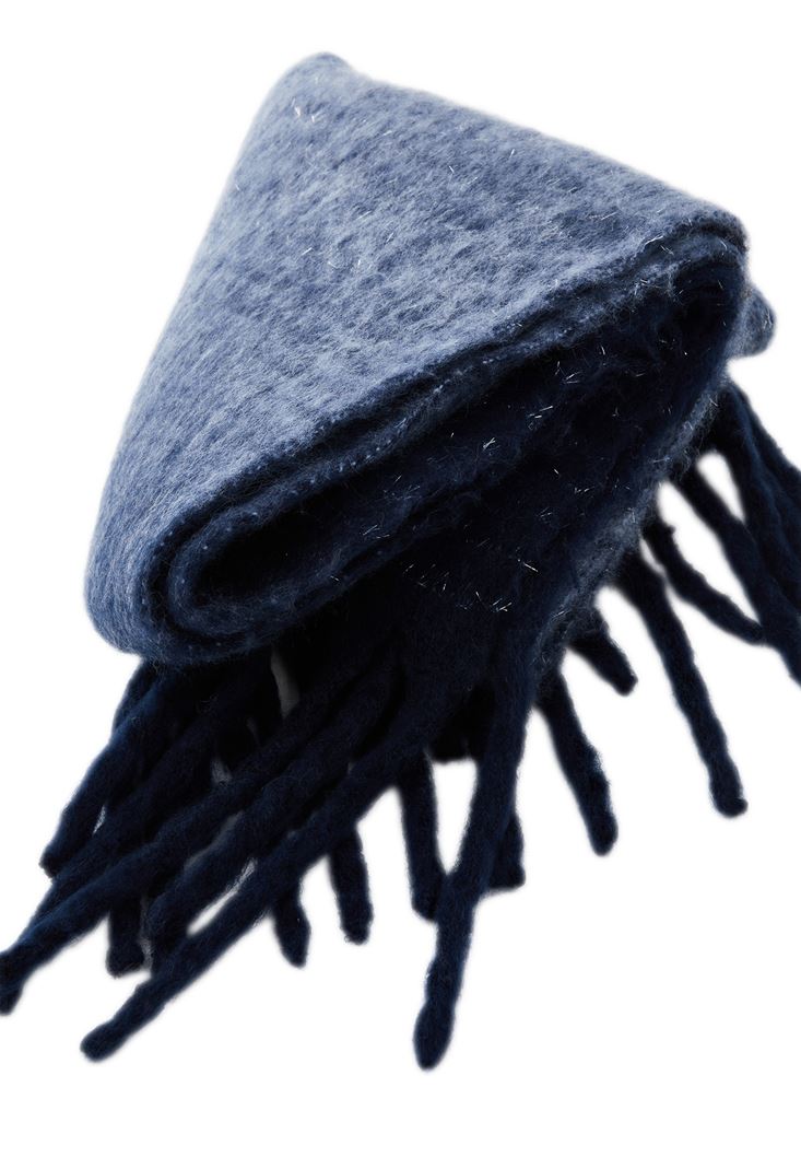 • Bayan Mavi Püskül Detaylı Kalın Şal