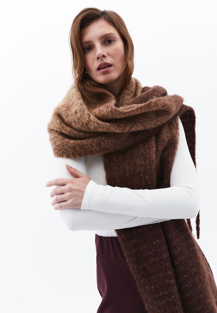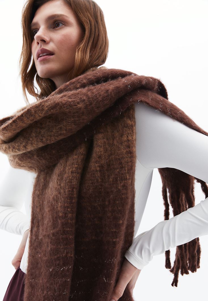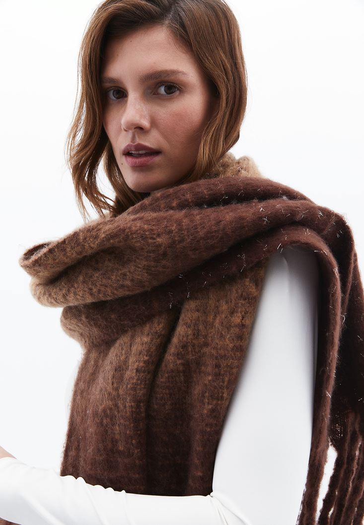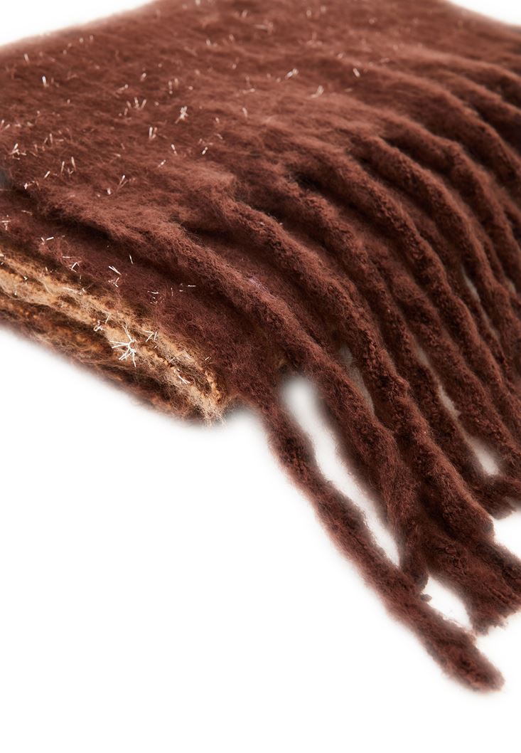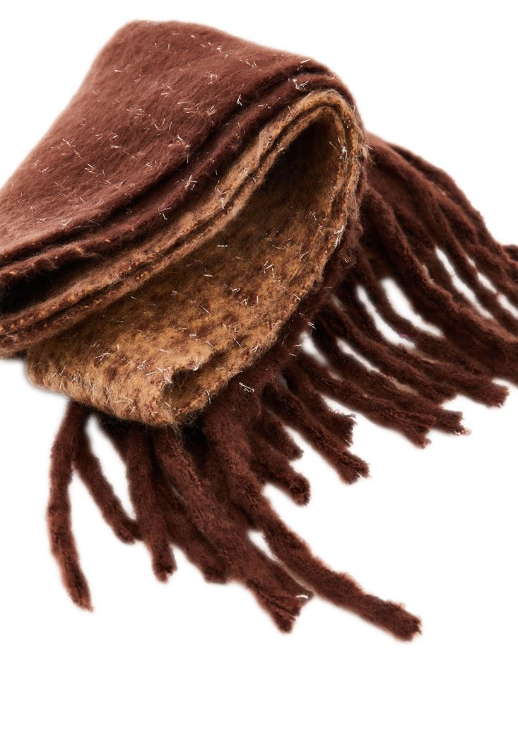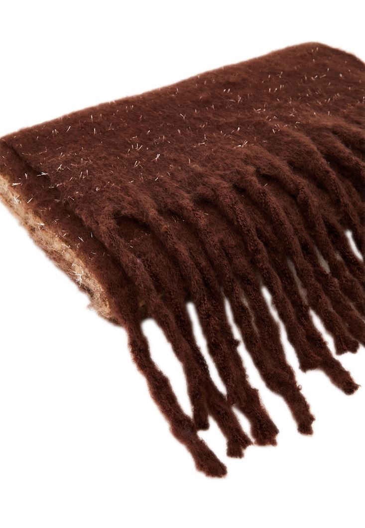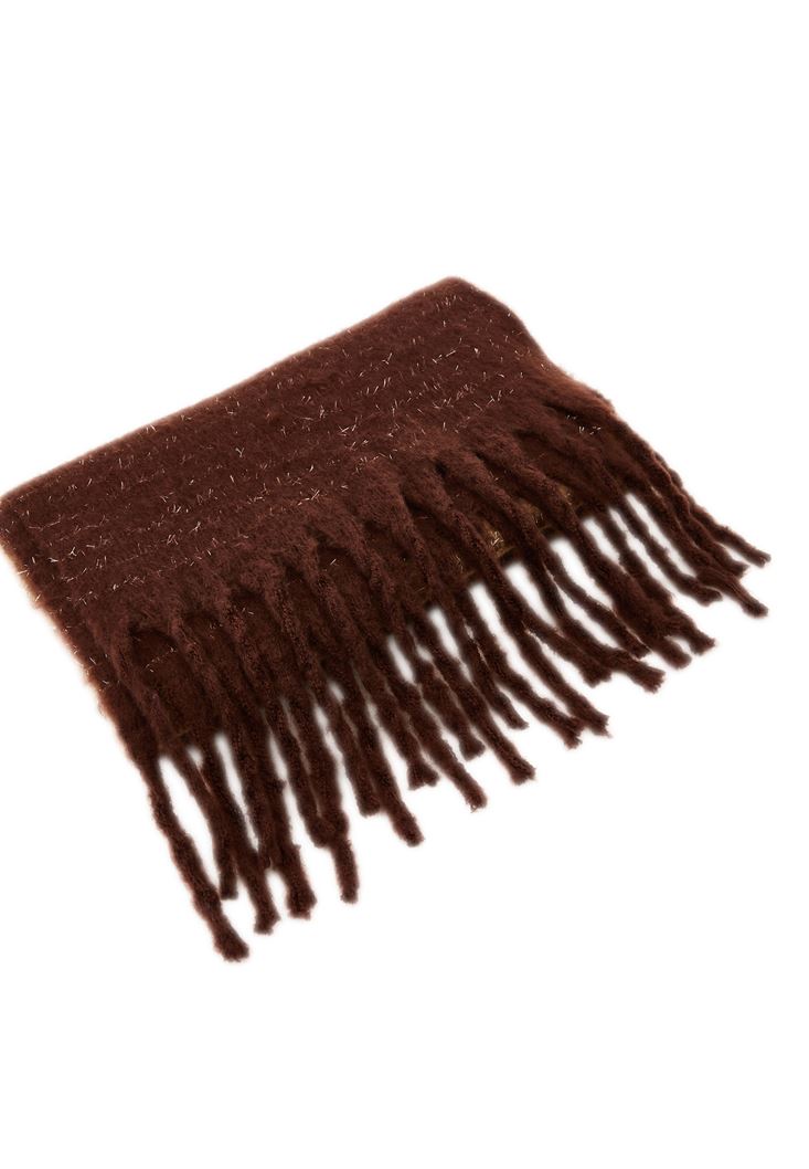 • Bayan Kahverengi Püskül Detaylı Kalın Şal