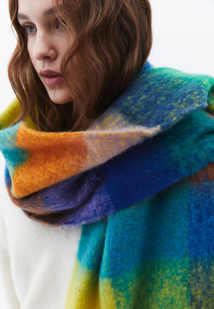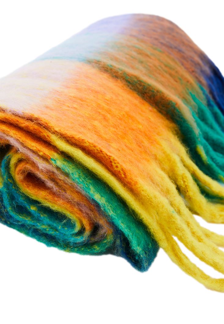 • Bayan Mavi Püskül Detaylı Kalın Şal