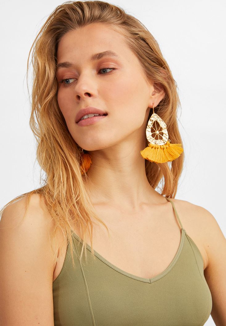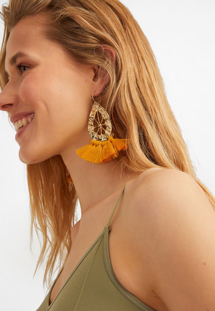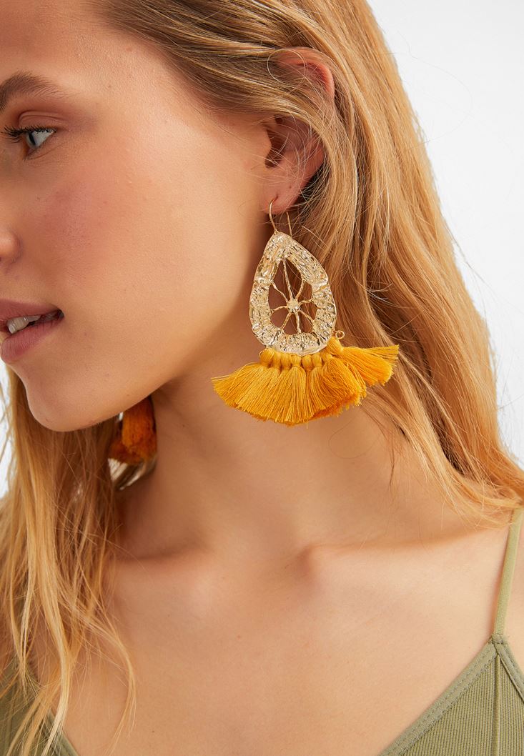 • Bayan Çok Renkli Püskül Detaylı Küpe