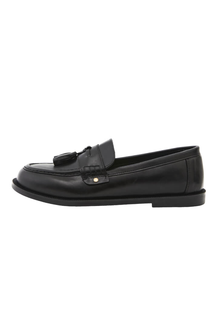 Siyah Püskül Detaylı Loafer Ayakkabı