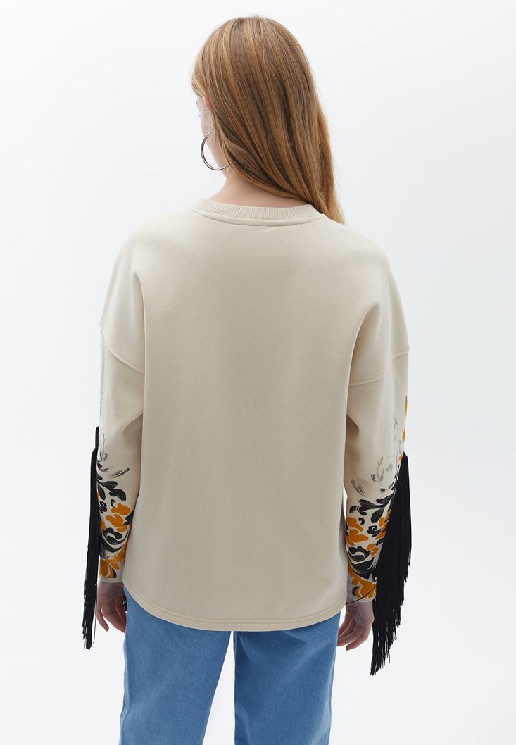 • Bayan Bej Püskül Detaylı Oversize Sweatshirt
