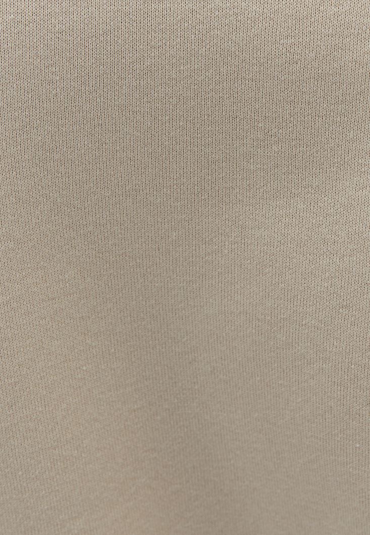 Pamuk karışımlı özel doku, bedenden uzak oversize fit, uzun kollu, standart boy, kolu baskı ve püskül detaylı, sıfır yaka.