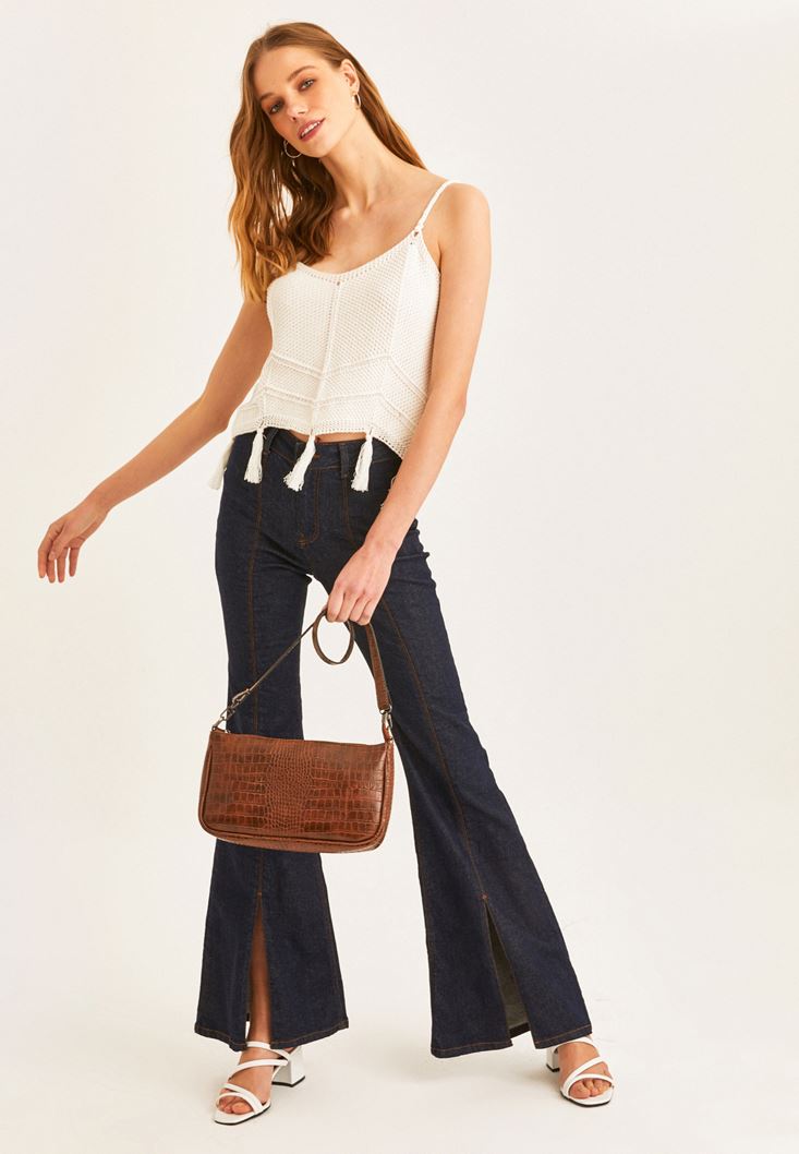 Püskül Detaylı Triko Atlet modeli, pamuk içerikli dokusu ve farklı örgü detayları ile yeni sezona hareket katıyor. Kadın triko modeli, askılı yapısı ve püsküllü görünümü ile Oxxo'da sizlerle buluşuyor. Triko atlet modeli ile yüksek belli skinnyleri veya bol paçalı pantolonları bir araya getirebilirsiniz. Kombinlerinize rahatlıkla dahil edebileceğiniz kadın triko modelinin yanında topuklu ayakkabılardan destek alabilirsiniz. Oxxo'nun bohem bir hava yaratan ve fazlasıyla dikkat çeken kadın triko modelleri ile siz de tarzınıza farklılık katabilirsiniz.