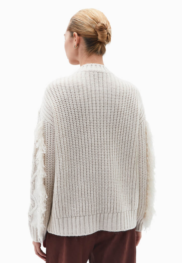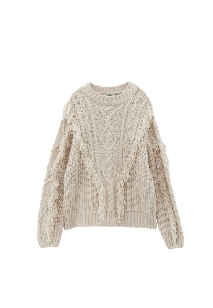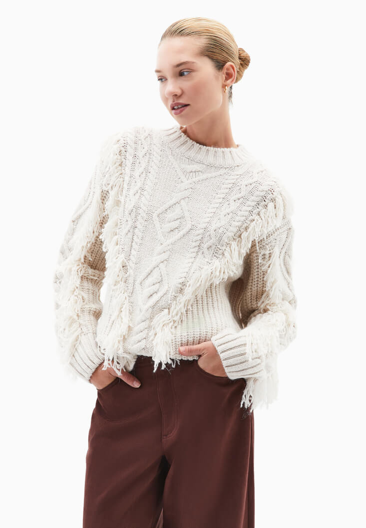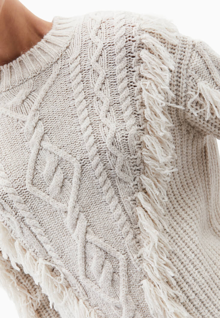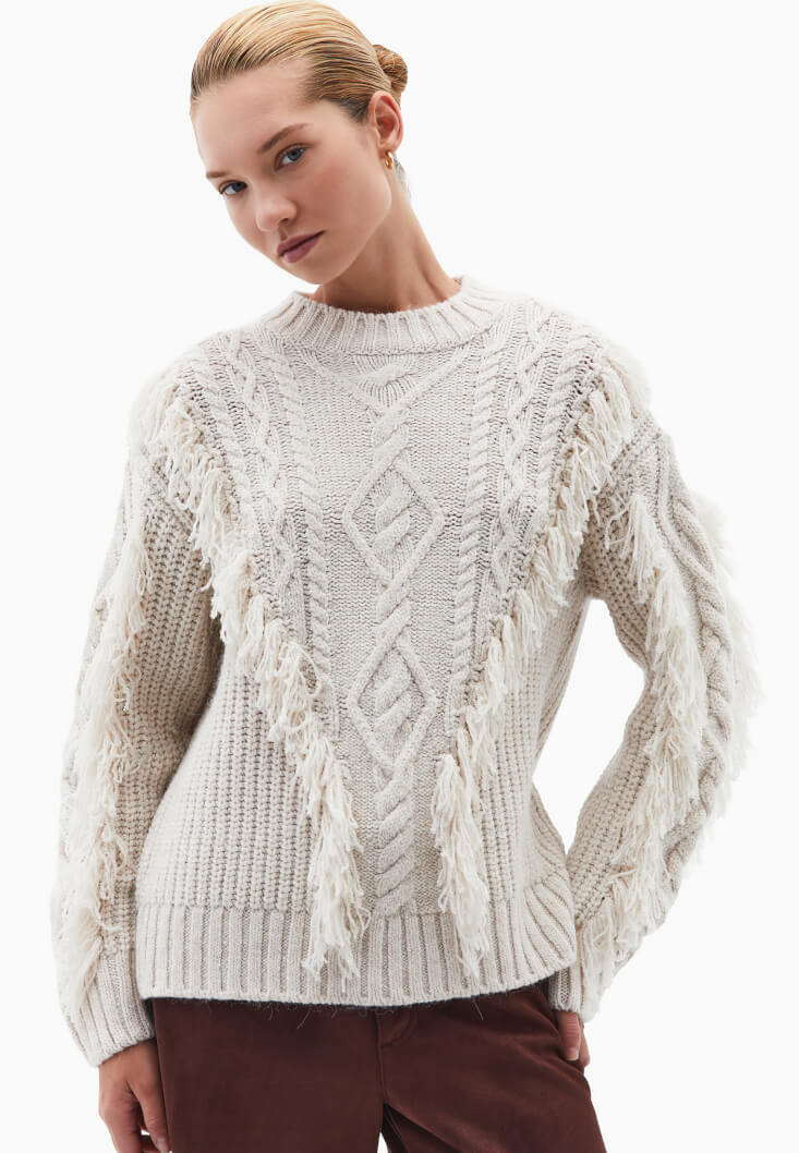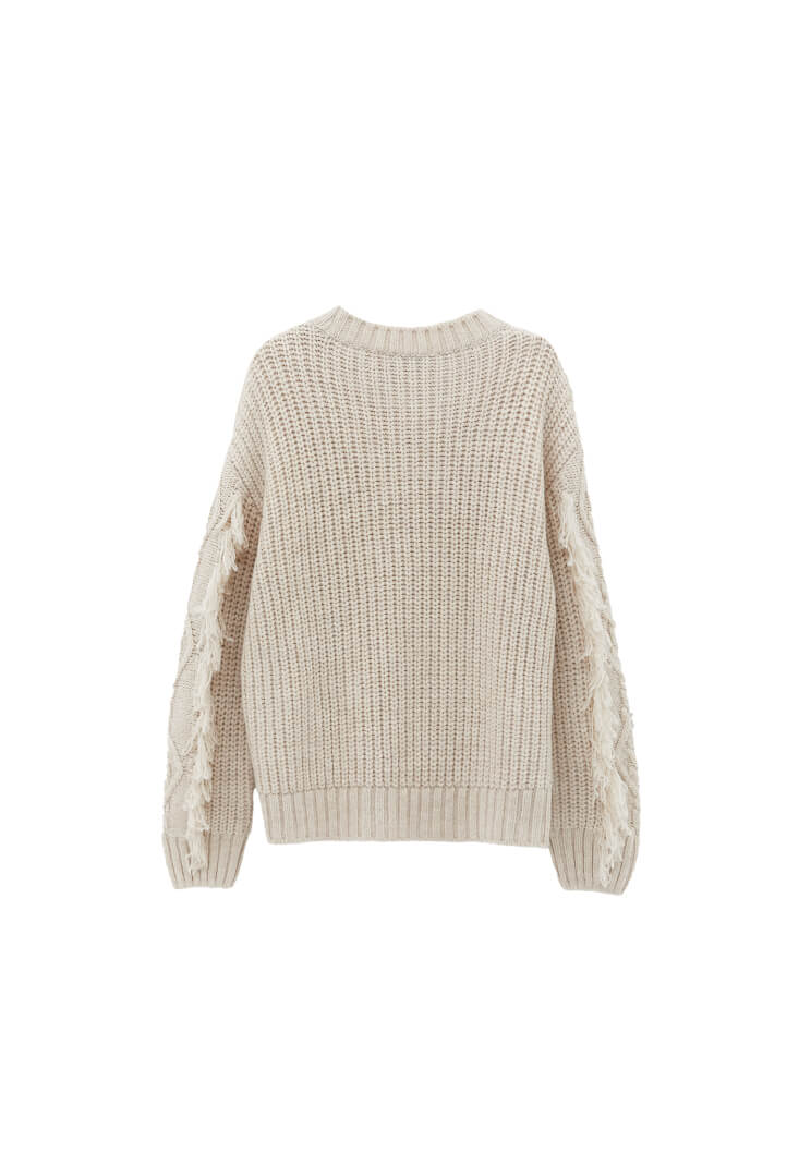 • Bayan Krem Püskül Detaylı Triko Kazak