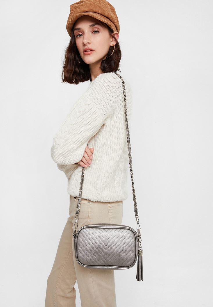 Gümüş Püskül Detaylı Zincir Askılı Çanta