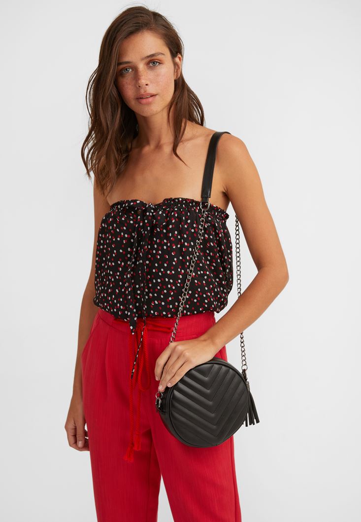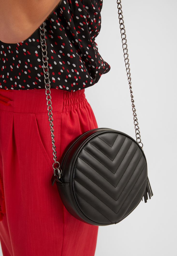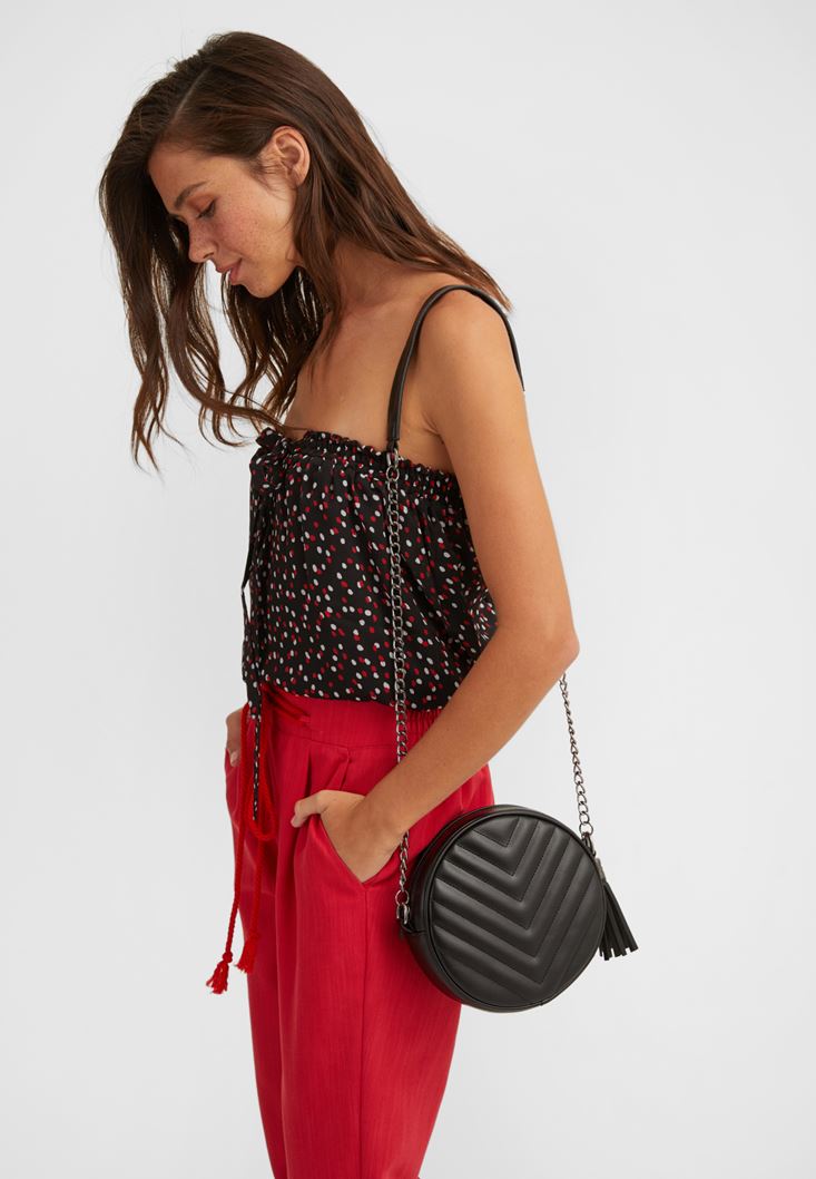Püsküllü Askılı Çanta modeli askısında kullanılan suni deri ve metal zincir detayı ile hoş bir görünüm kazanan askılı çantayı kombinlerinizde çok severek kullanacaksınız. Yuvarlak forma sahip kadın askılı çanta modeli kullanılan püskül detayı ile hareketlendirilmiş spor ve şıklığı bir arada sunan kadın çanta modeli. OXXO'nun ruhunu ve enerjisini yansıtan küçük çanta modellerinden birisi.