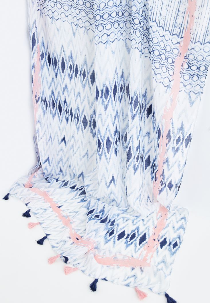Oxxo Püsküllü Etnik Desenli İnce Şal 18763159