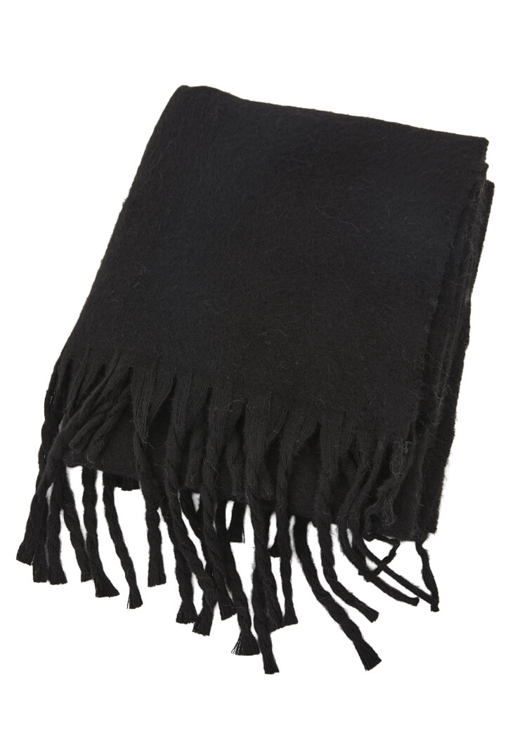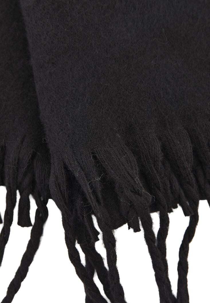 Siyah Püsküllü Kalın Şal