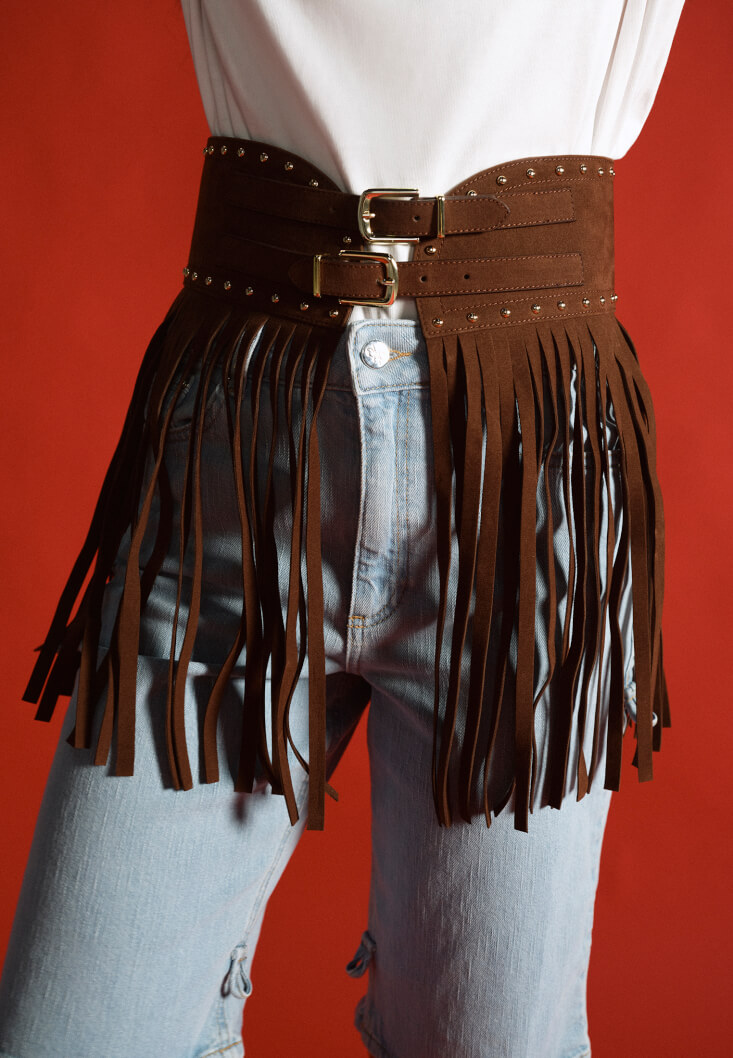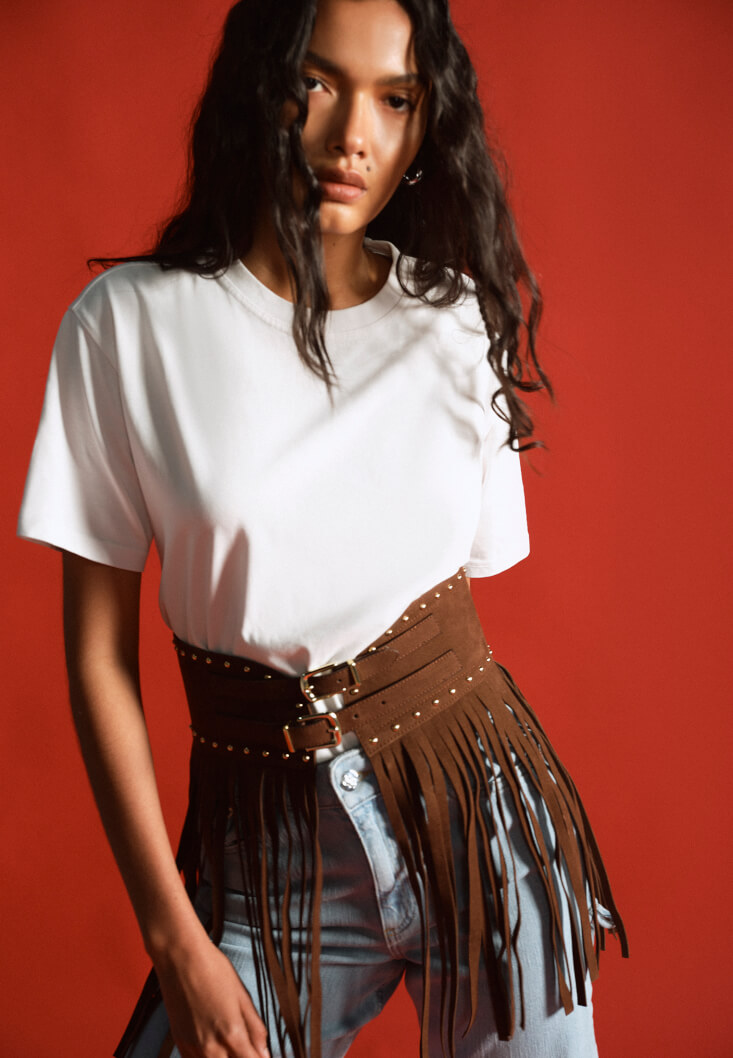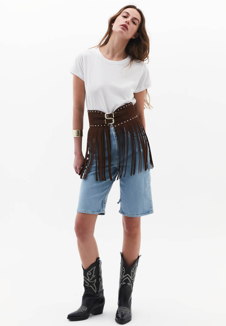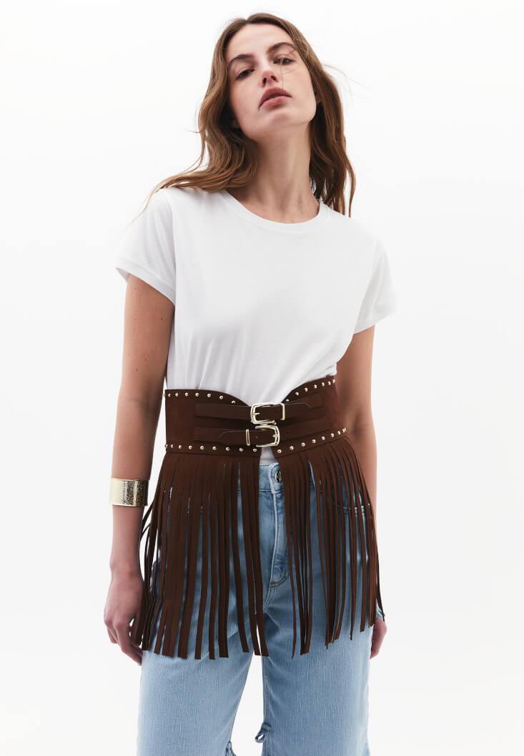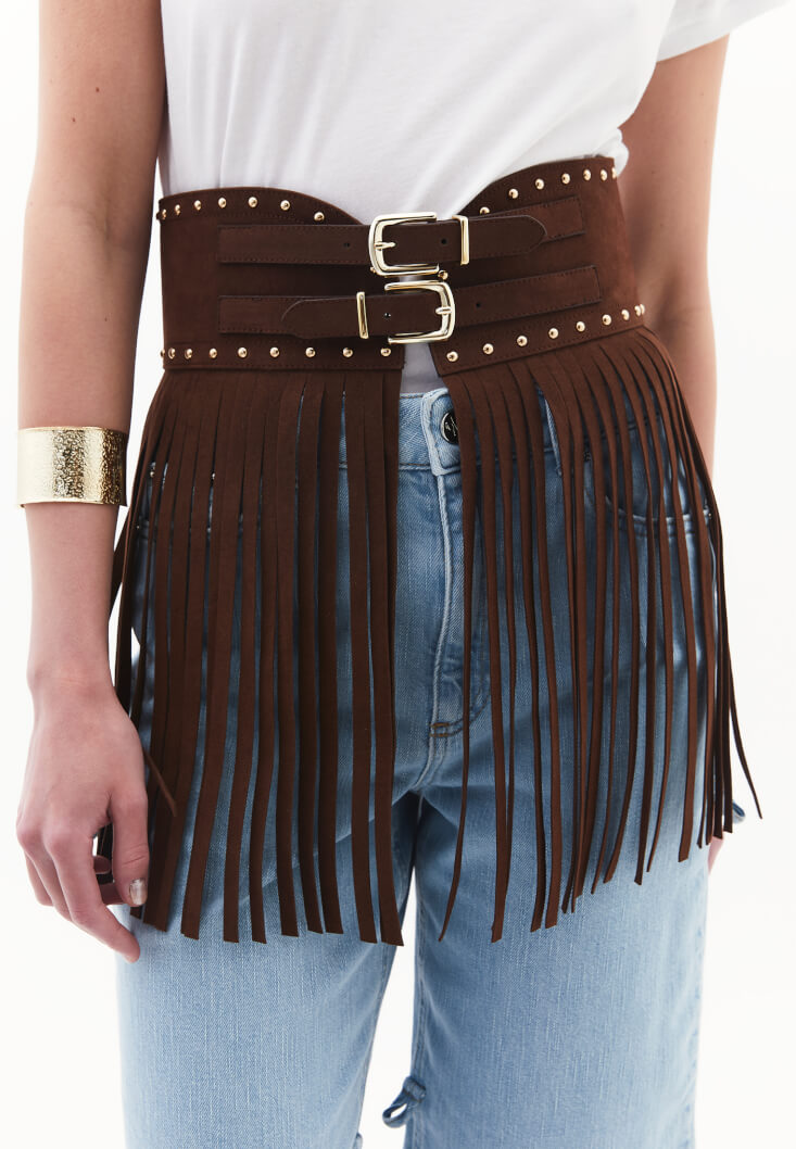 • Bayan Kahverengi Püsküllü Kemer