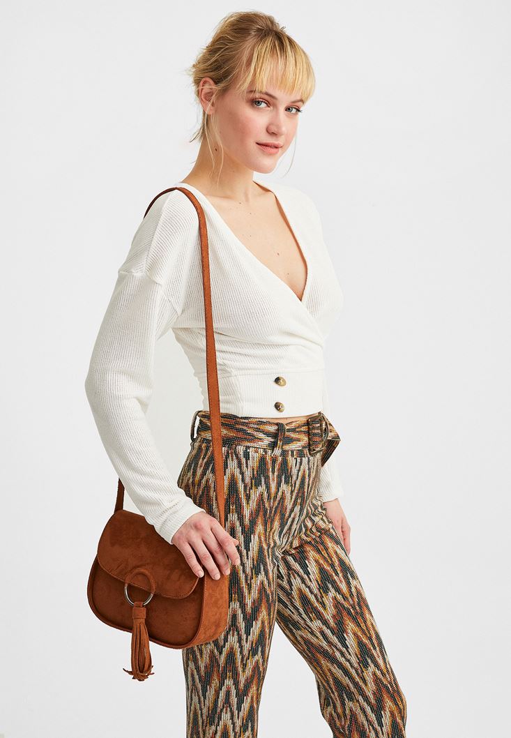 • Bayan Kahverengi Püsküllü Süet Çanta