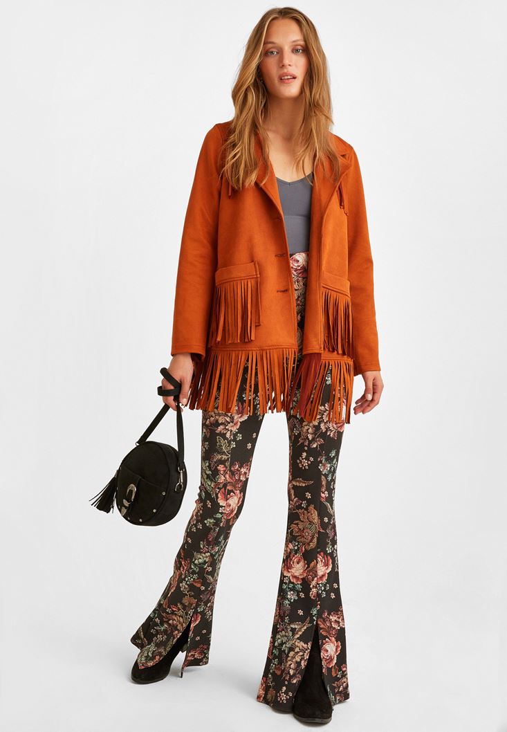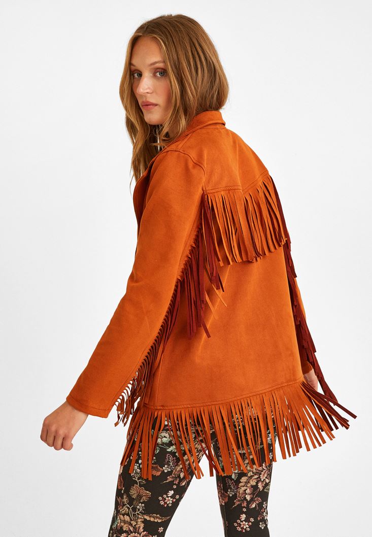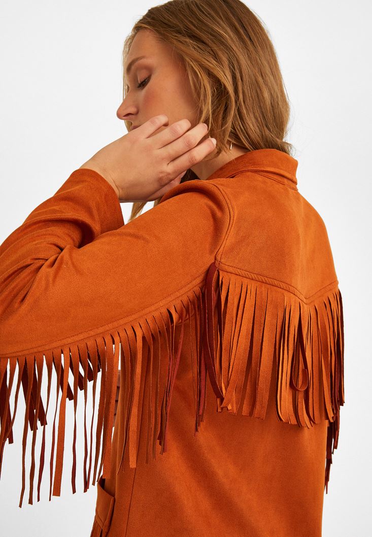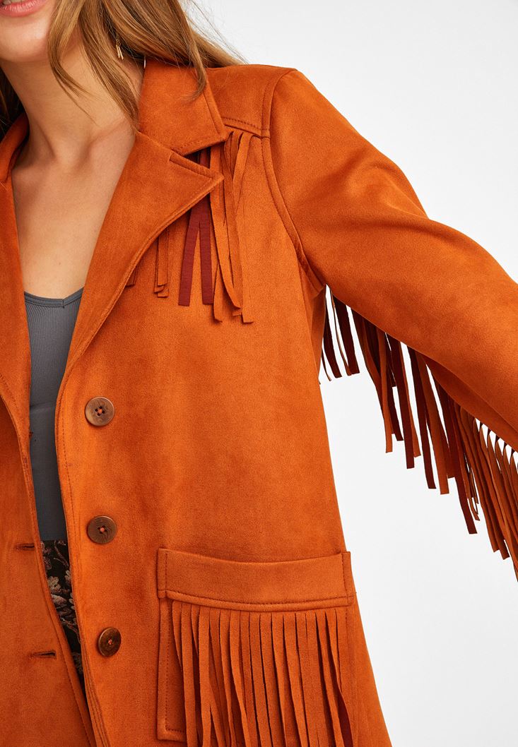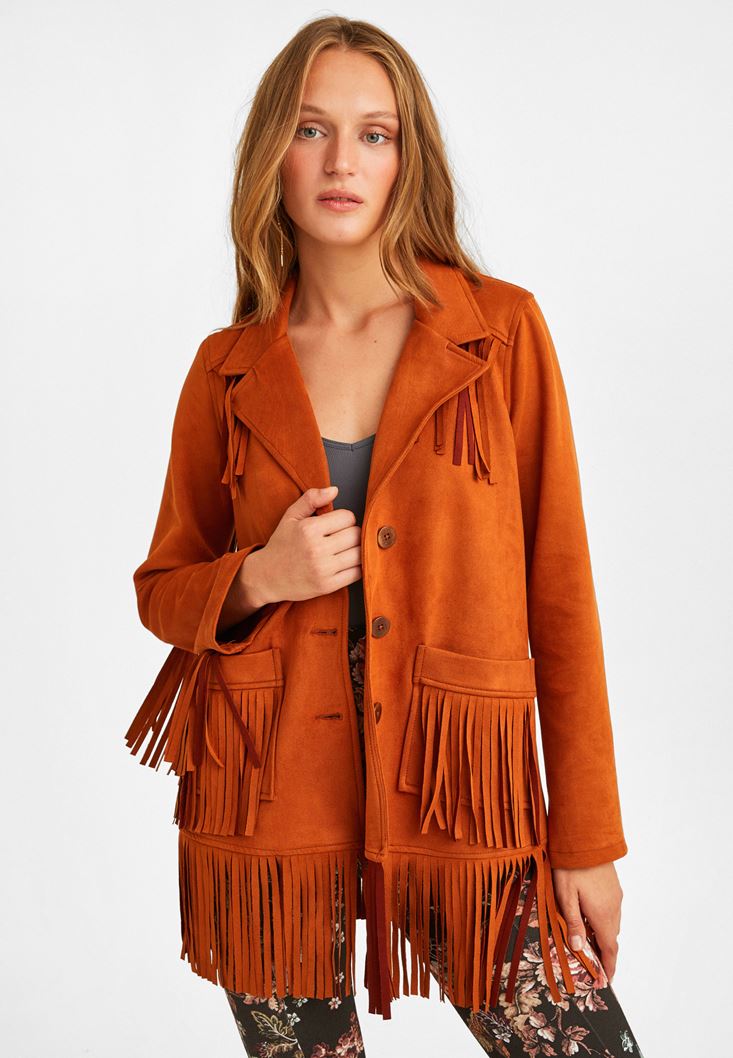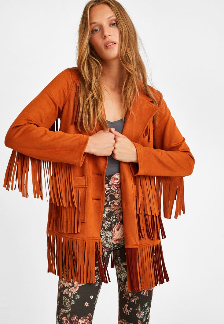 Turuncu Püsküllü Süet Ceket