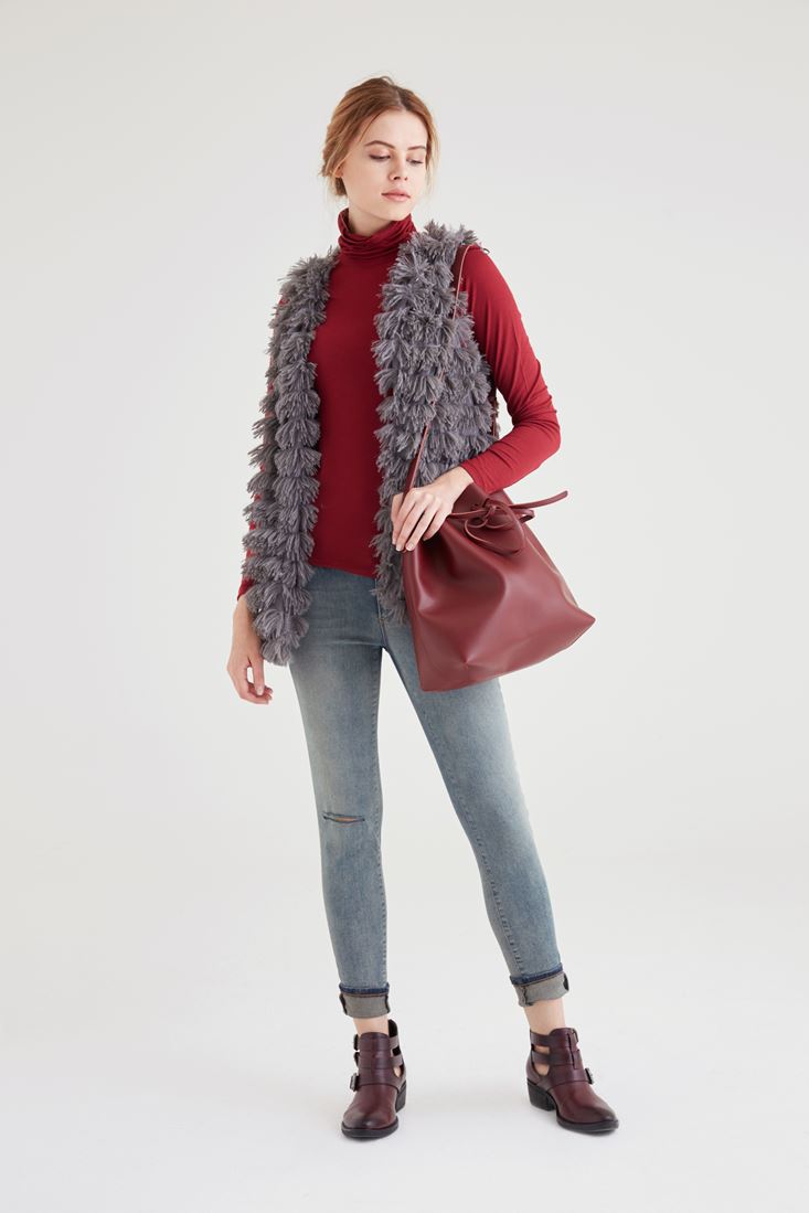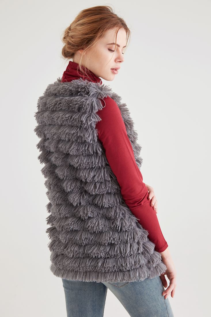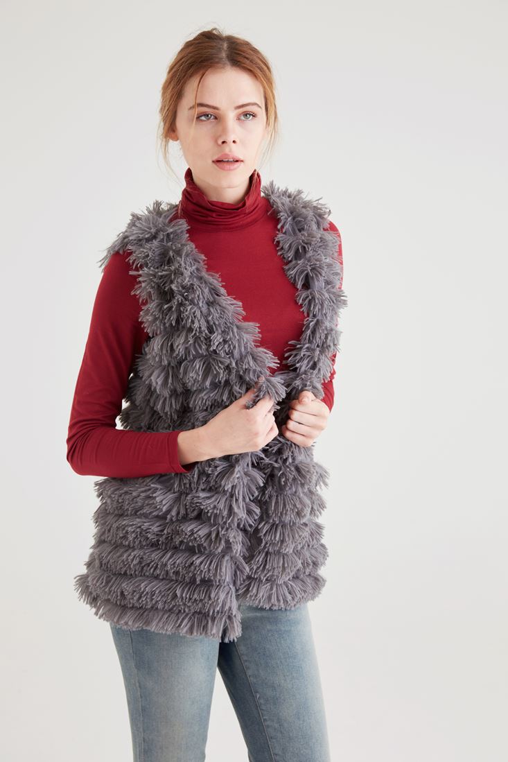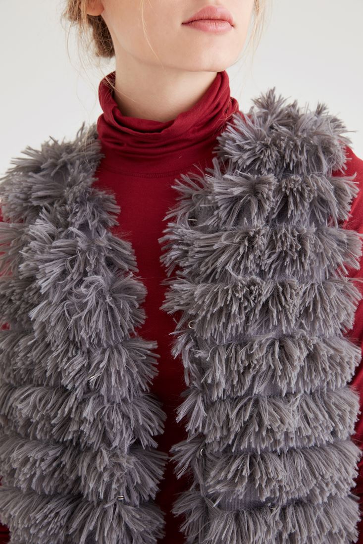 Gri Püsküllü Yelek