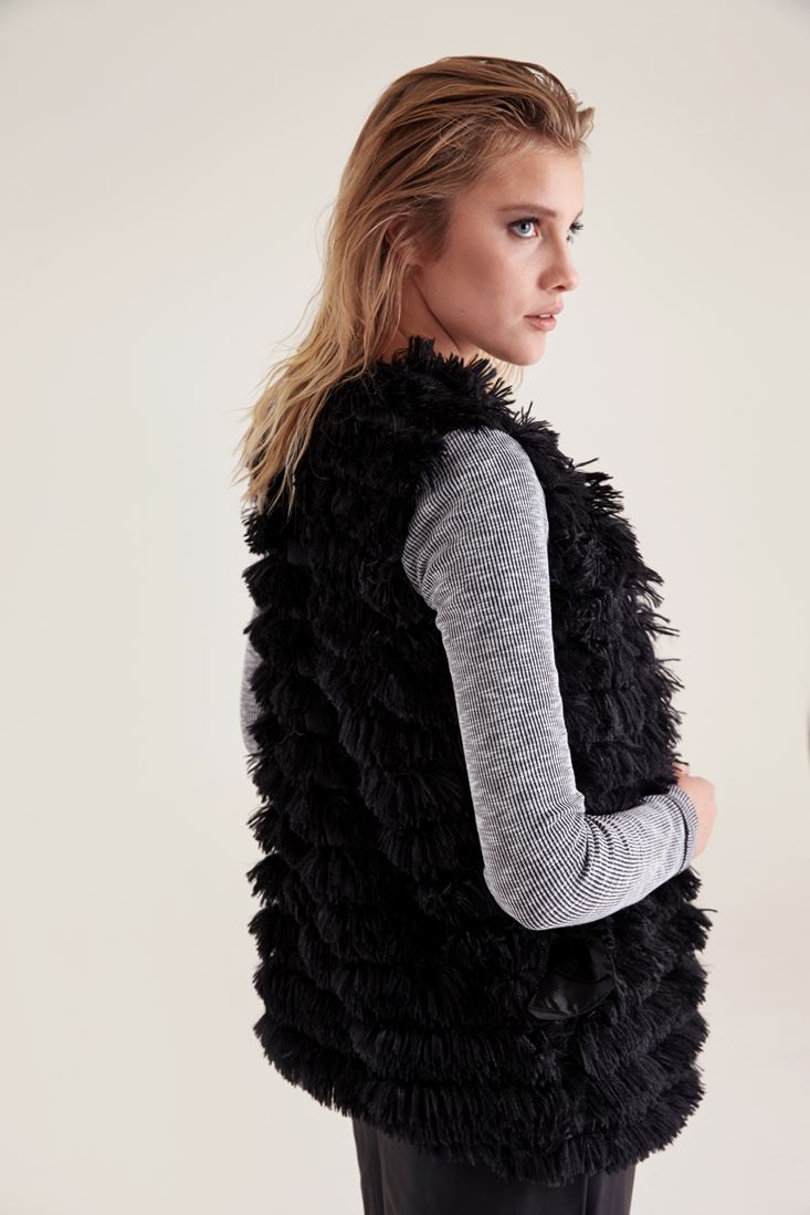 Yumuşak dokulu, düğmesiz, kışlık yelek