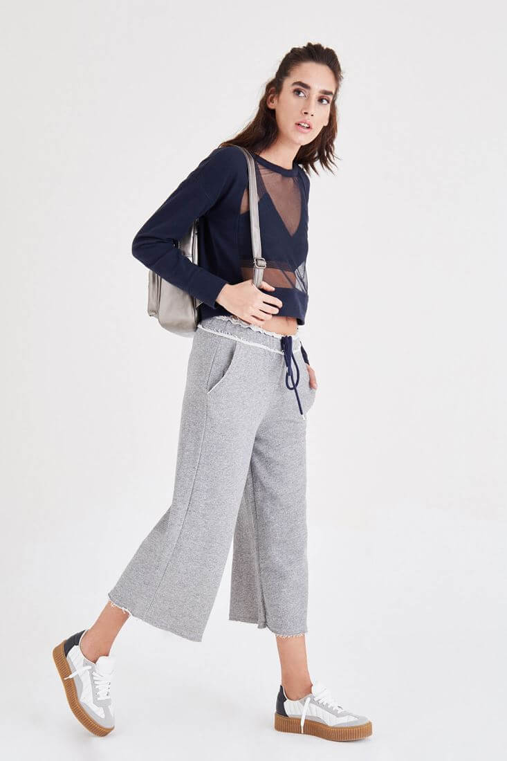 Kisa paçali rahat kesim pantolonlar çok tercih ediliyor. Özellikle pamuk kumastan üretilen rahat kesim pantolon modelleri sonbahar aylarinda oldukça sik karsimiza çikacak. Spor giyimden hoslananlar için tasarlanan pantolon modellerini spor ayakkabilarinla tamamla.