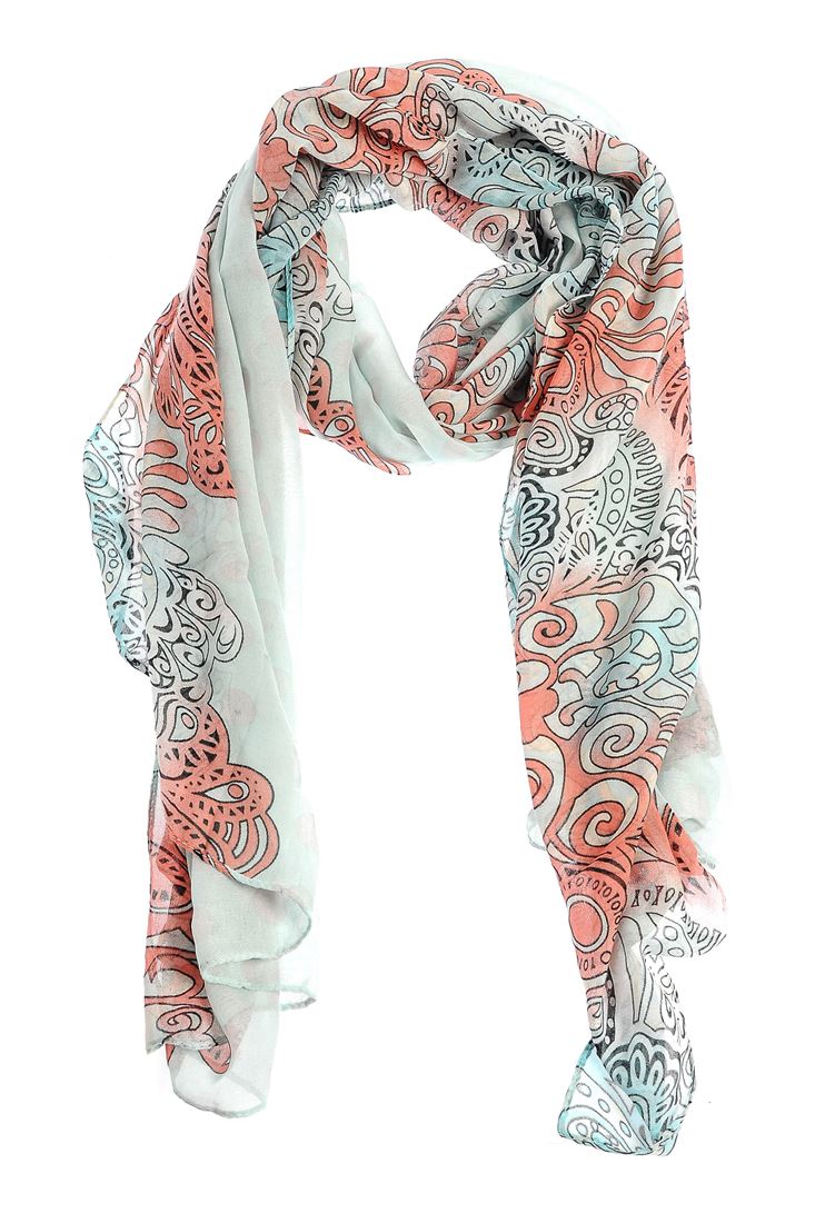 Karışık motifli, renkli ince şal.