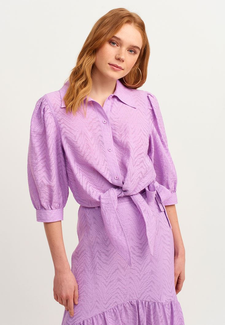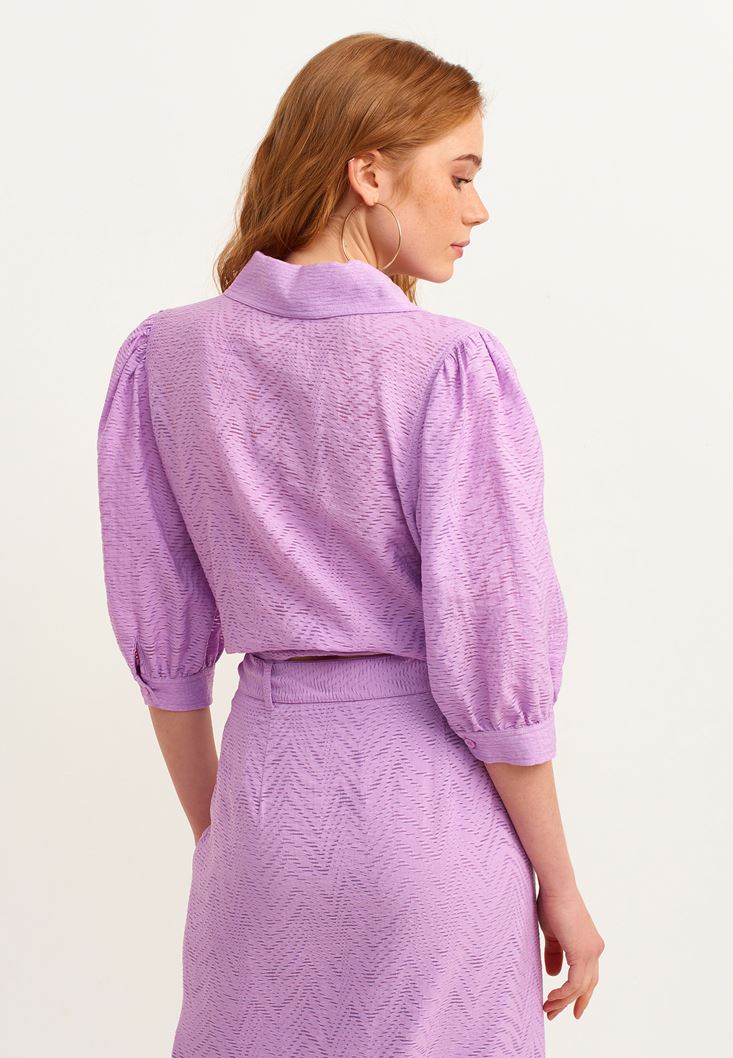 • Bayan Mor Romantik Balon Kollu Crop Gömlek