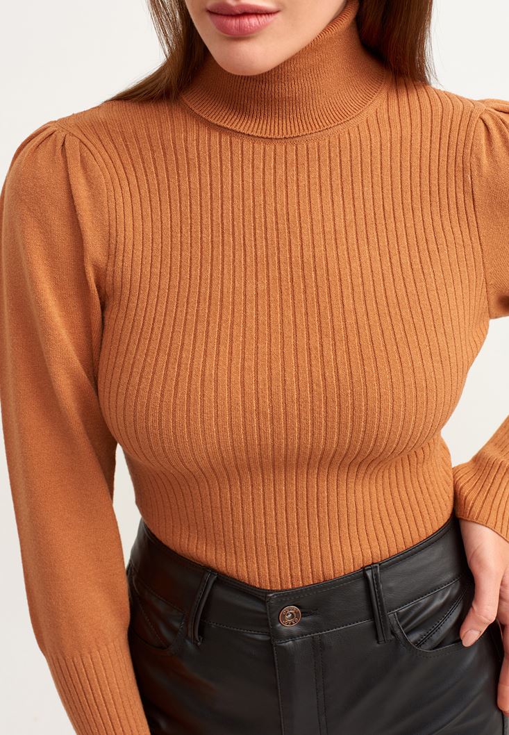• Bayan Kahverengi Romantik Balon Kollu Kazak