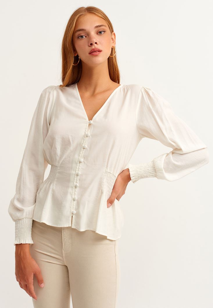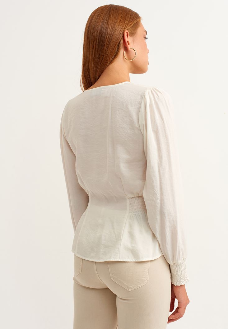 • Bayan Krem Romantik Gipeli Bluz ( MODAL )