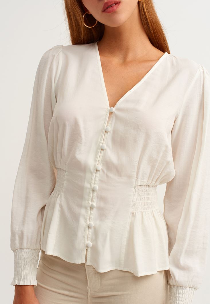 Krem Romantik Gipeli Bluz ( MODAL )