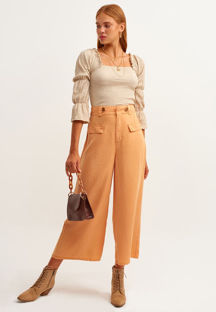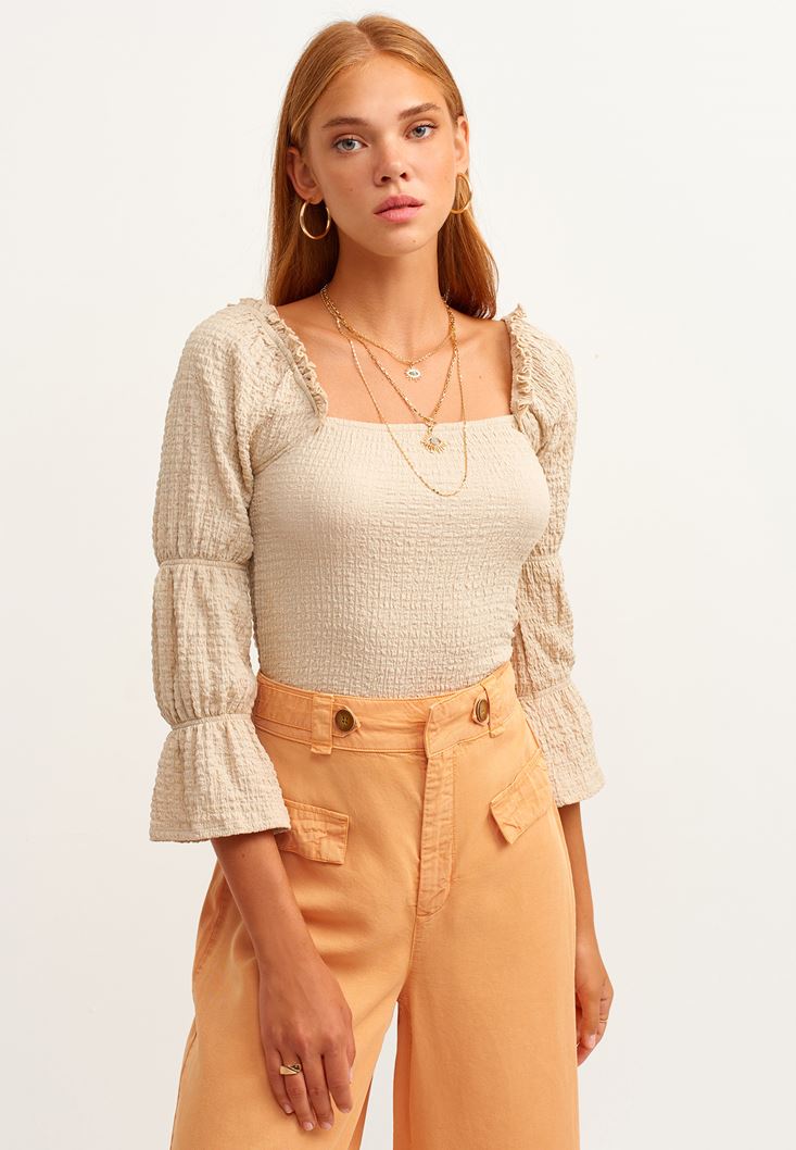 Romantik Kare Yaka Bluz modeli. Gipeli bluzun hoş duruşunu bu sezon mutlaka deneyimle... Yüksek belli skinnylerle veya mini eteklerle kullanmayı tercih edebileceğin kare yaka bluz ile romantizmin etkisini hissedebilirsin... Gündüz veya akşam için planlanan randevulara onu dahil ederken topuklu terliklerden ve baget çantalardan yardım al. :)