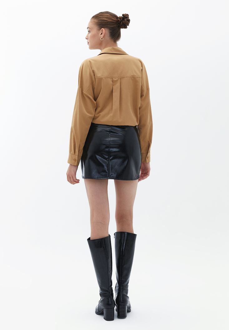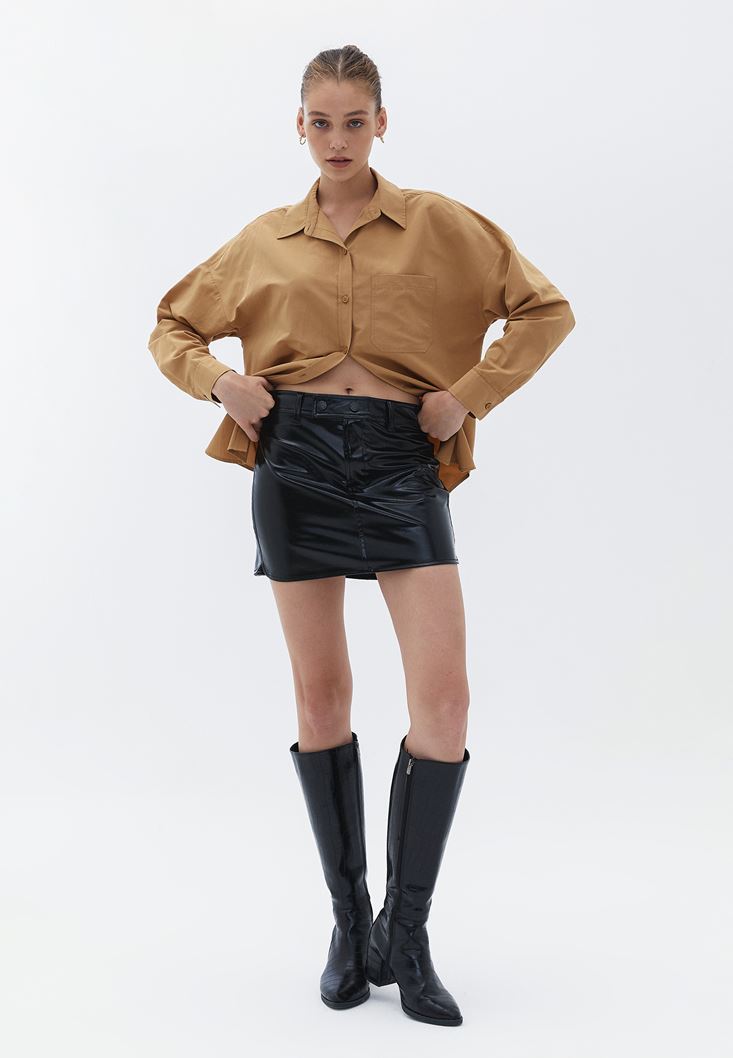 Düşük Bel Rugan Mini Etek
