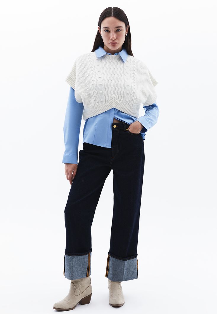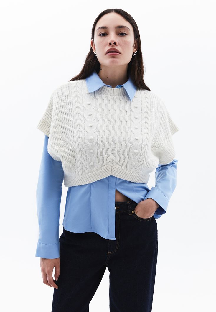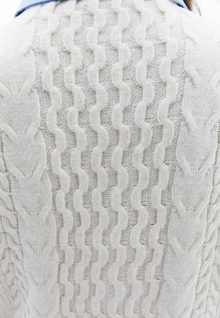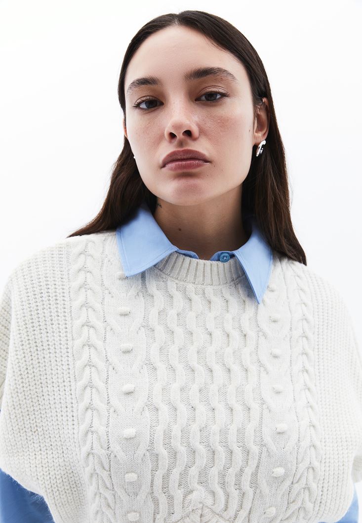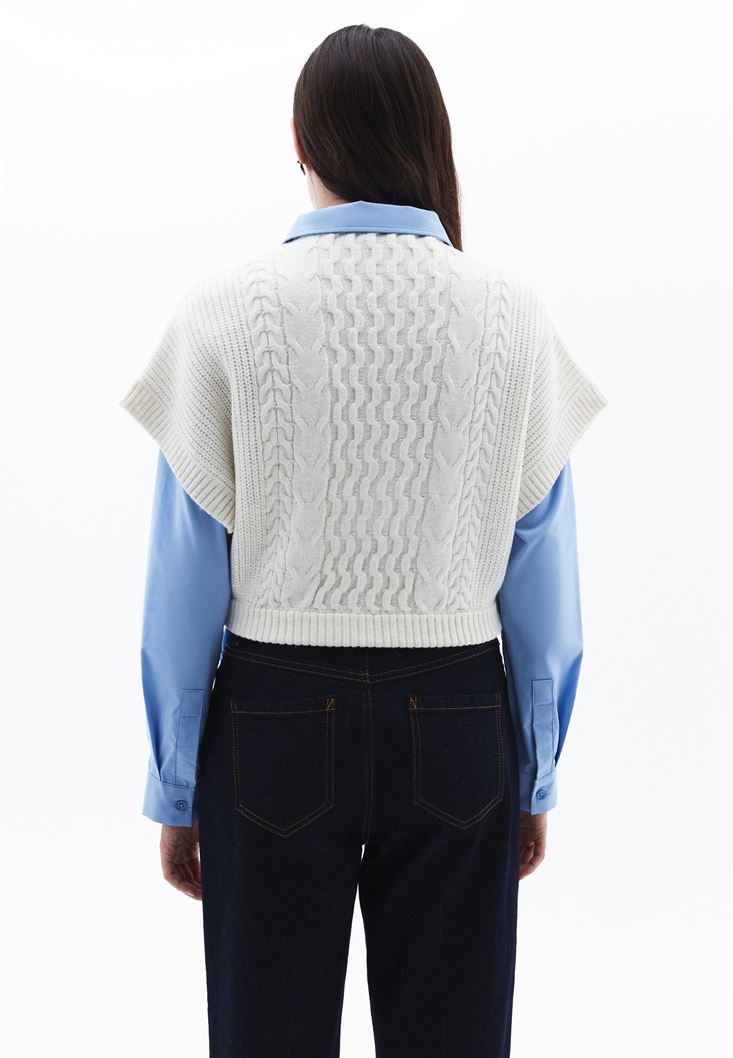 • Bayan Krem Saç Örgü Detaylı Crop Süveter