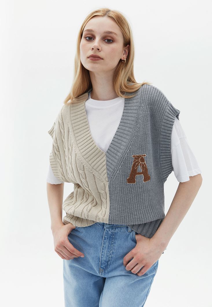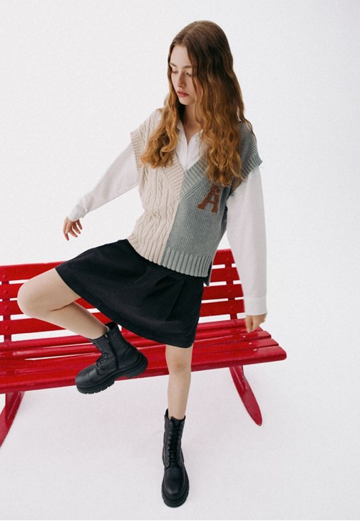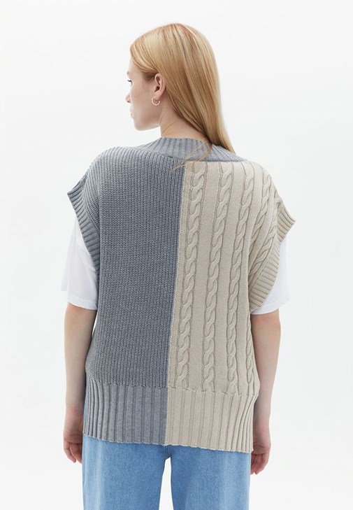 Saç Örgü Detaylı Süveter ve Etek Kombini