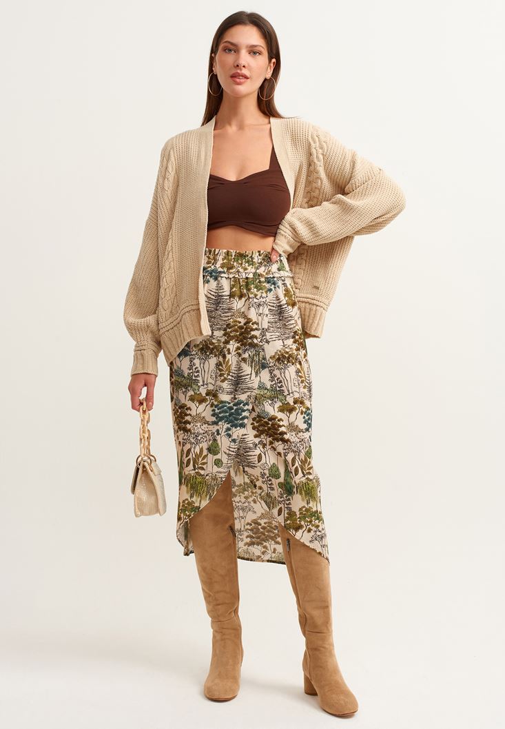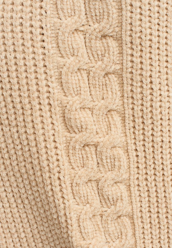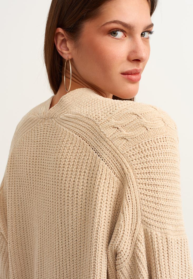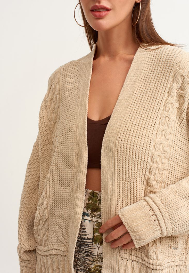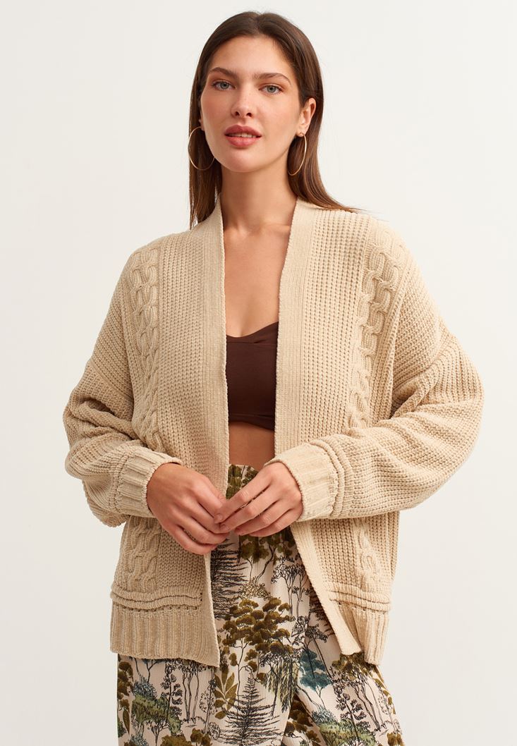 • Bayan Bej Saç Örgülü Şönil Hırka
