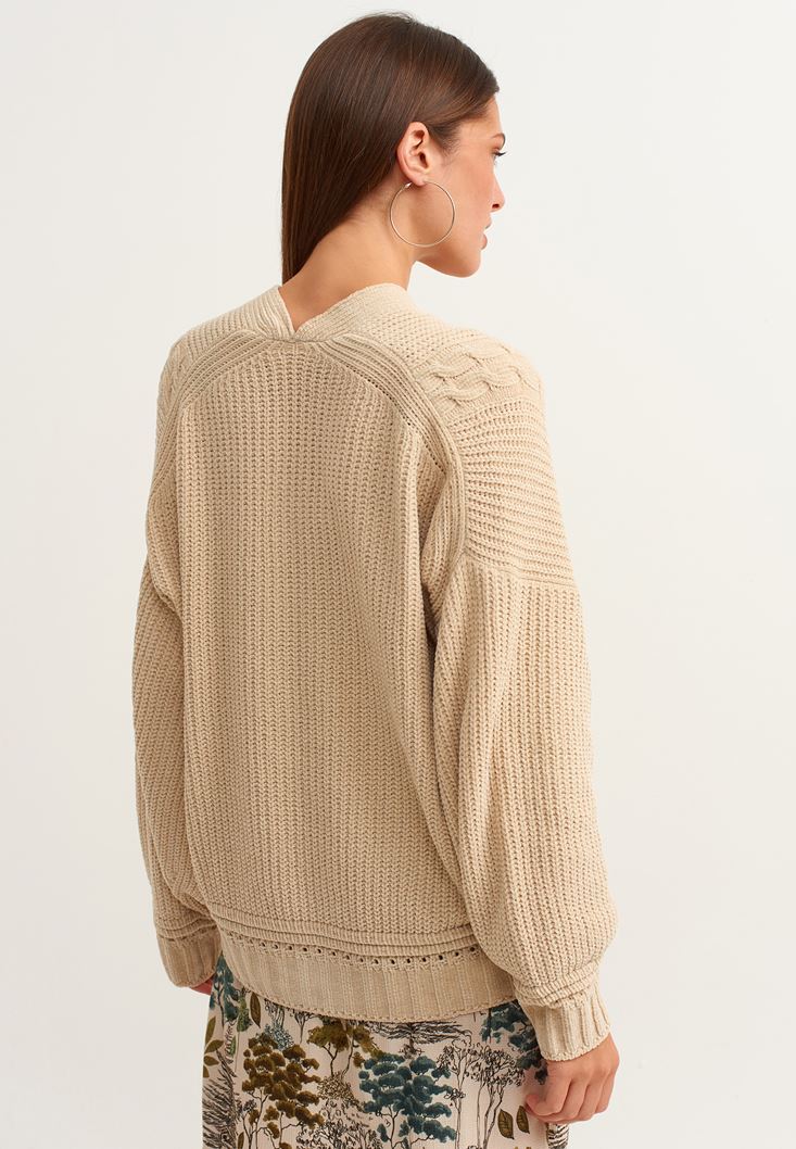 Muhteşem örgü oyunları ile sunulan şönil hırka modeli mevsimin keyfini çıkarırken rahatlığı yakalaman için tasarlandı! Seni sımsıcak bir şekilde saracak olan bu hırka yoğun iş günlerinde veya randevularında sana eşlik edebilir. Şönil hırka modelini yüksek belli pantolonlarla ve crop top bluzlarla birleştirerek bu sezon kendini ödüllendir... :)