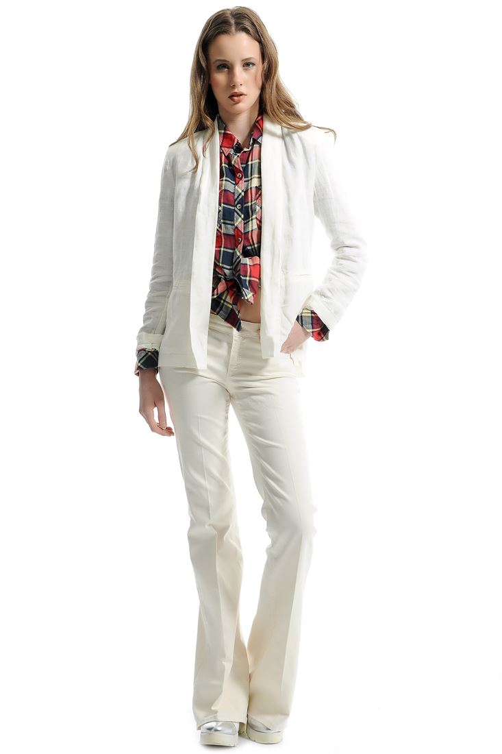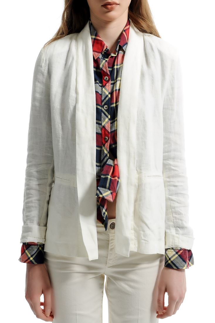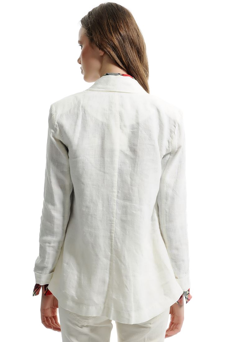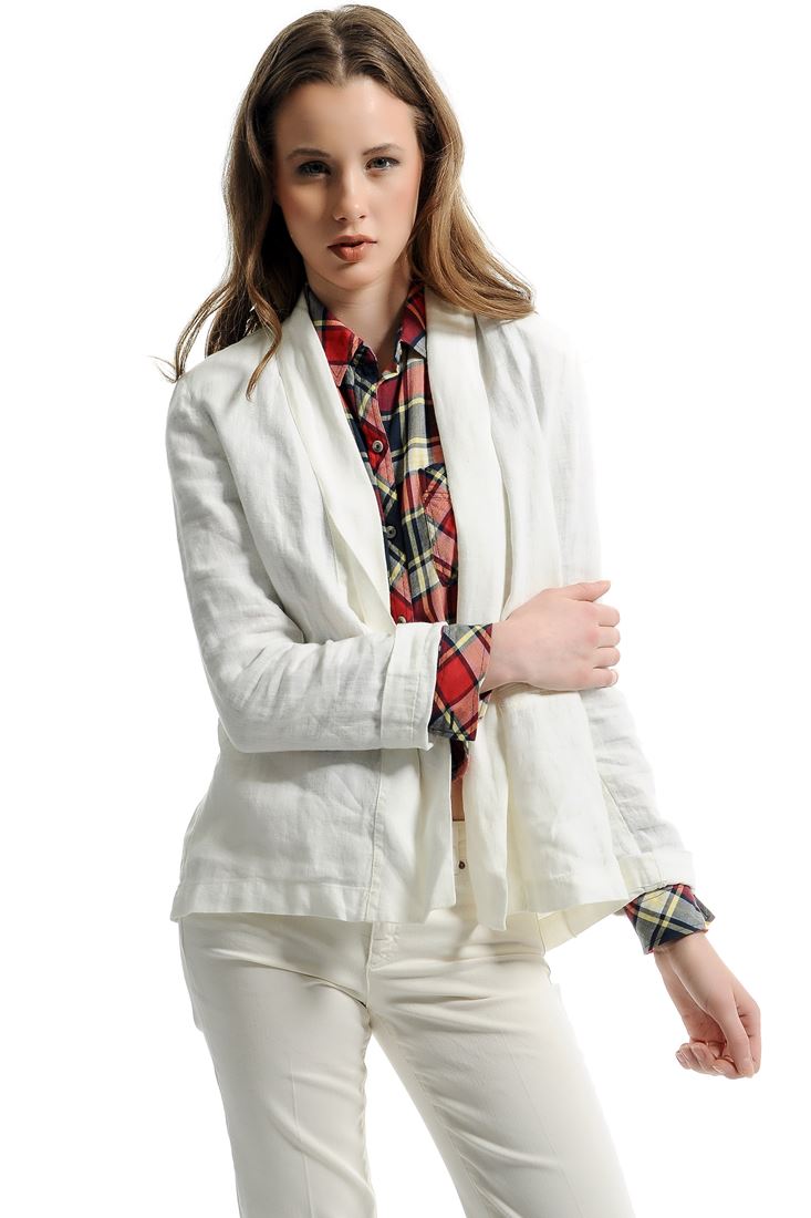 • Bayan Krem Şal Yaka Keten Ceket