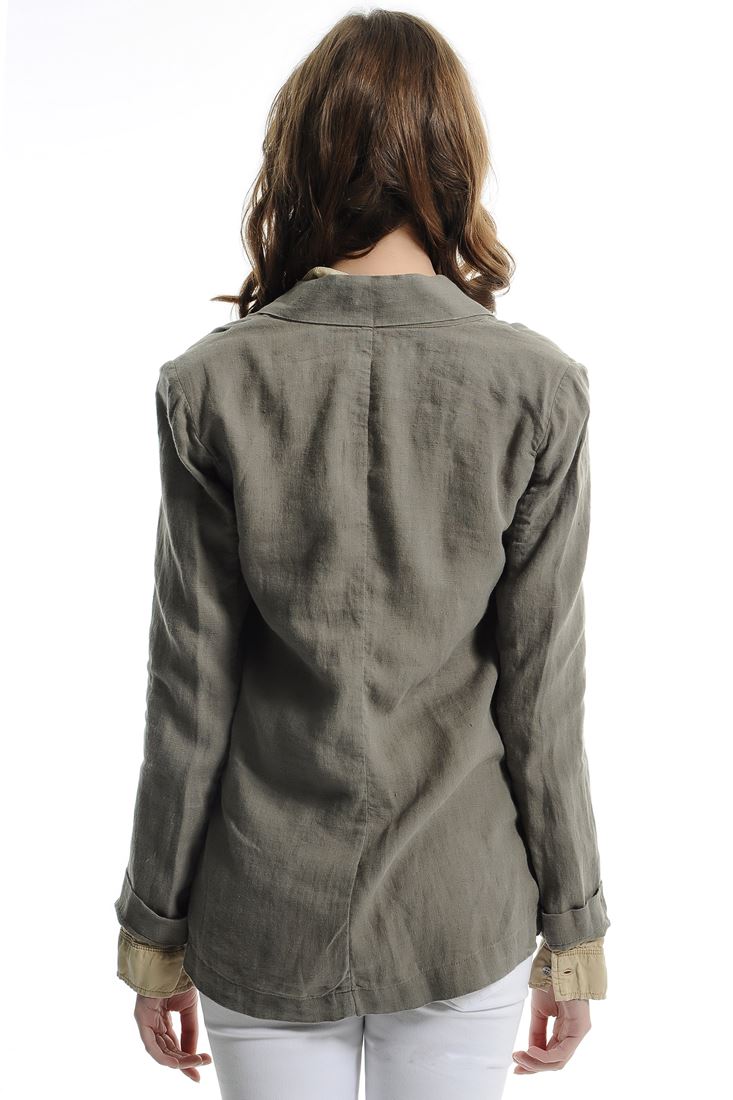 • Bayan Yeşil Şal Yaka Keten Ceket