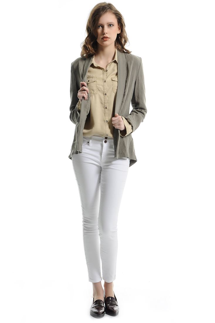 Üç farkli renk seçenegiyle hazirlanan ve %100 Linen kumasi sayesinde dayanikliligiyla dikkatleri üzerine çeken Sal Yaka Keten Gömlegi skinny jeanle tamamlayarak spor tarzda kullabilir, kemer detayi ekleyerek de sik bir görüntüye ulastirabilirsiniz. Sal yakasi ve kalçayi kapatan dökümlü formuyla kombininizi hareketlendirecek OXXO tasarimi ceket serin günlerde kurtarici parçaniz olacak.