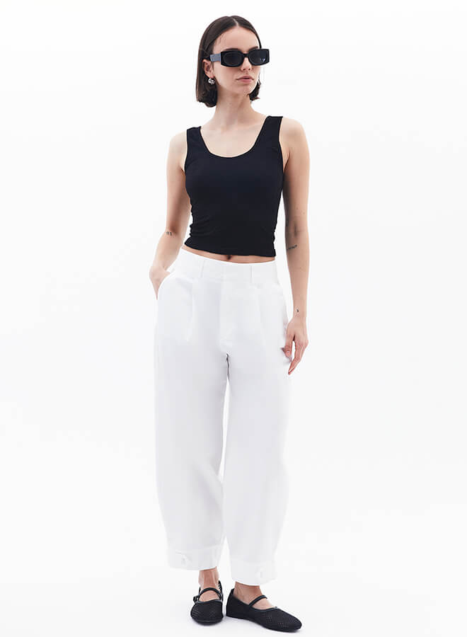 Yüksek Bel Barrel-Fit Pantolon