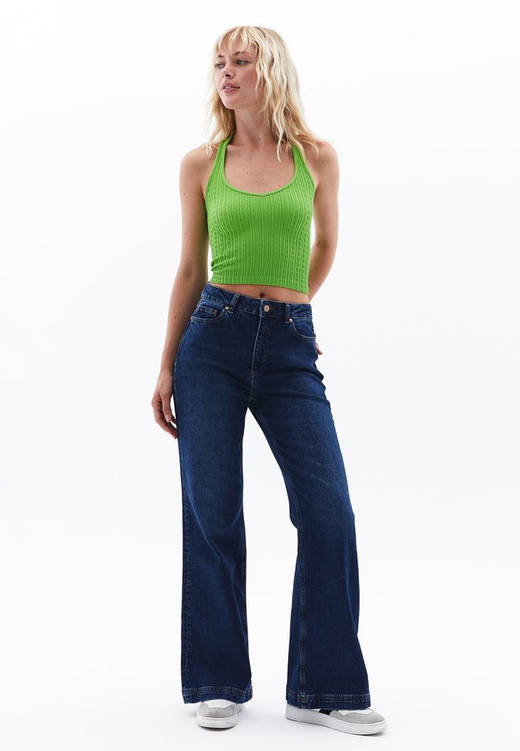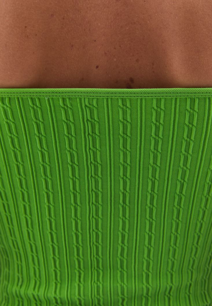Yeşil Seamless Jakarlı Crop Top