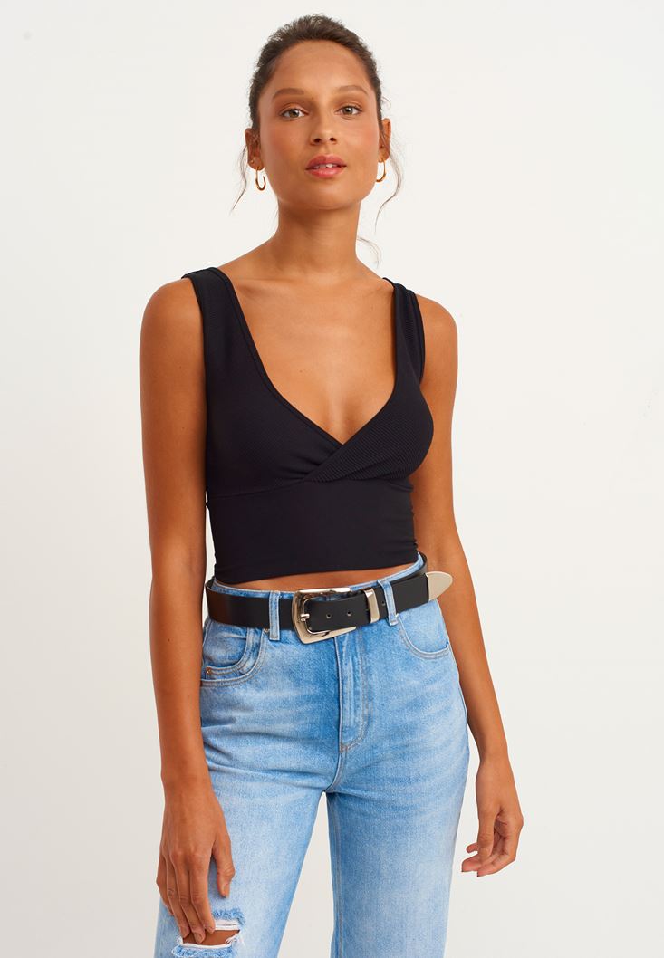 • Bayan Siyah Seamless Kruvaze Crop Top