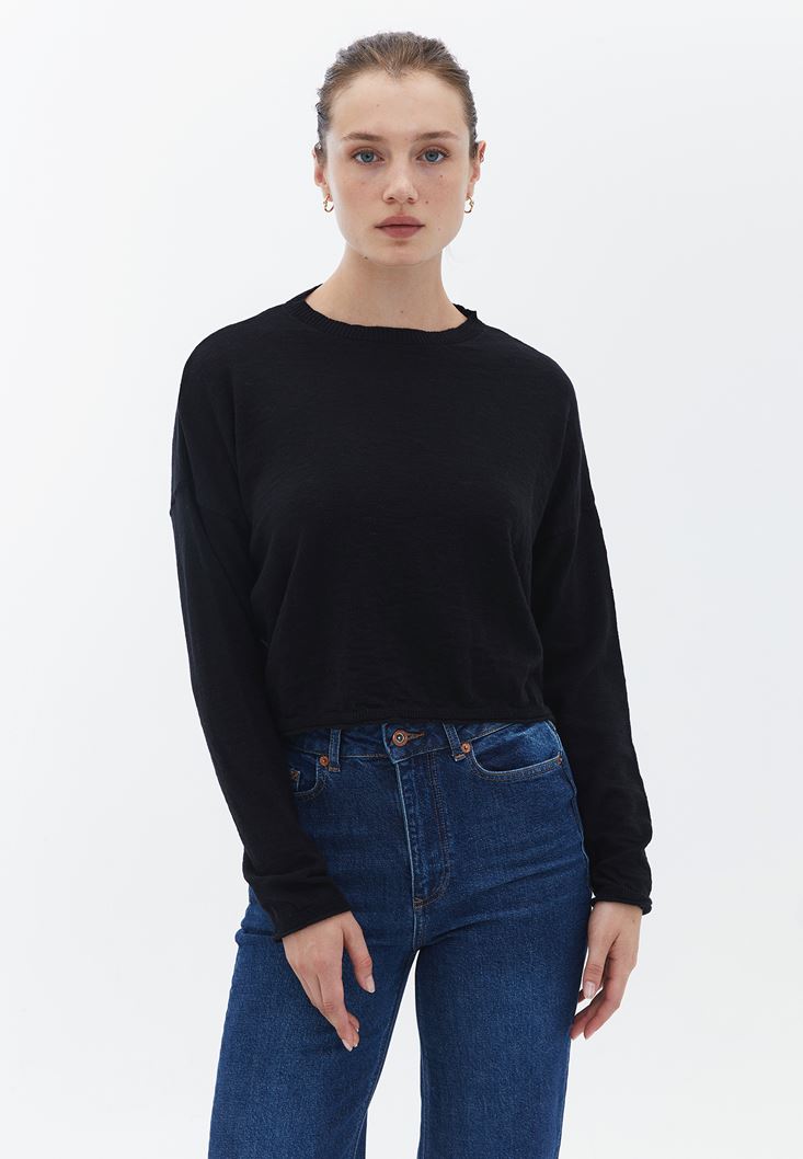 Bisiklet Yaka Crop Kazak