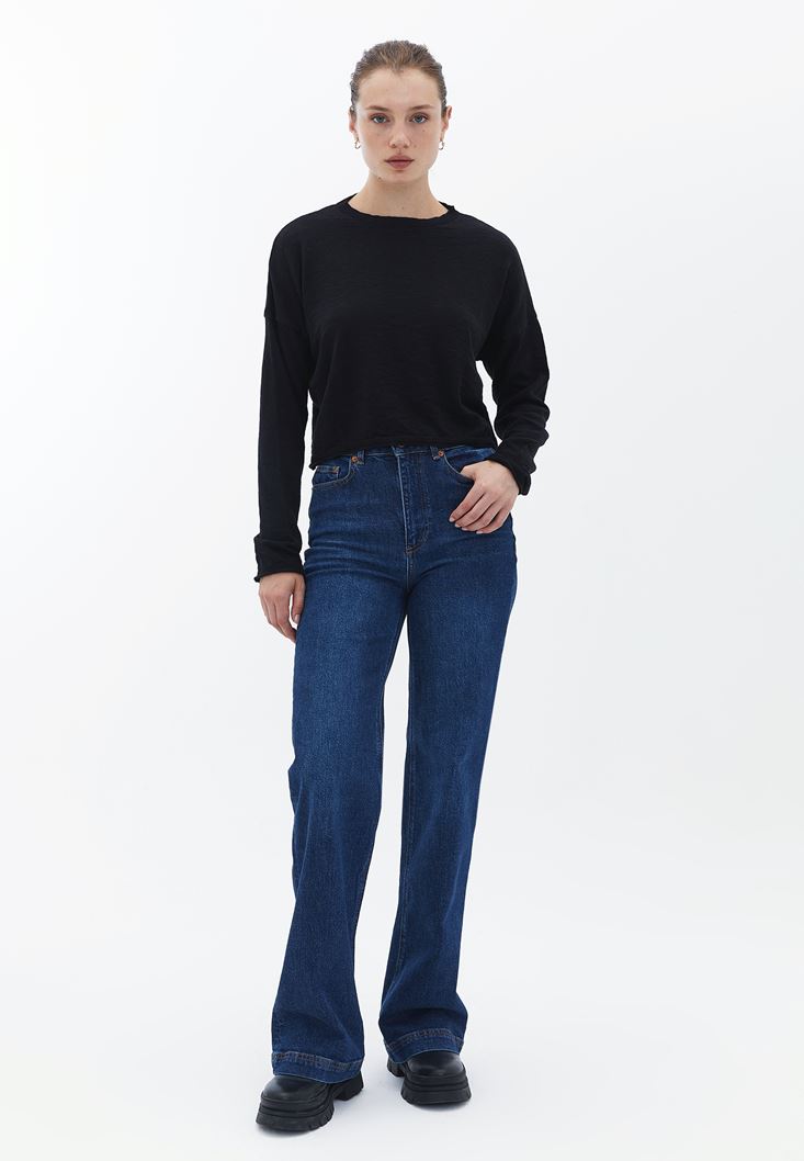 Yüksek Bel Wide-Leg Denim Pantolon