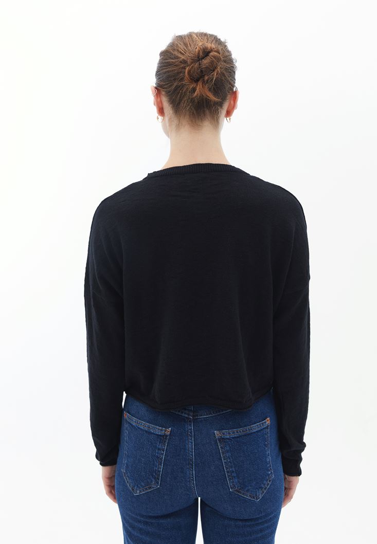 Crop Kazak ve Denim Pantolon Kombini