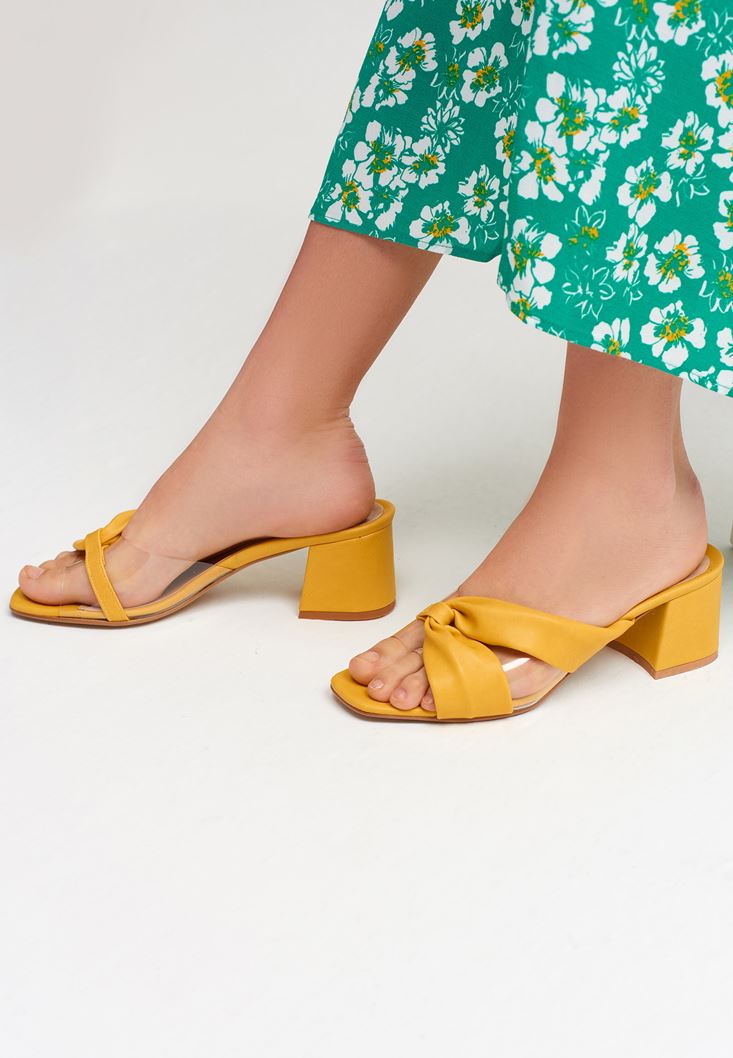 Sarı Şeffaf Şerit Detaylı Topuklu Terlik