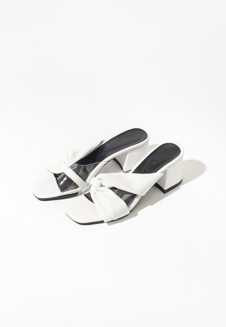 Beyaz Şeffaf Şerit Detaylı Topuklu Terlik