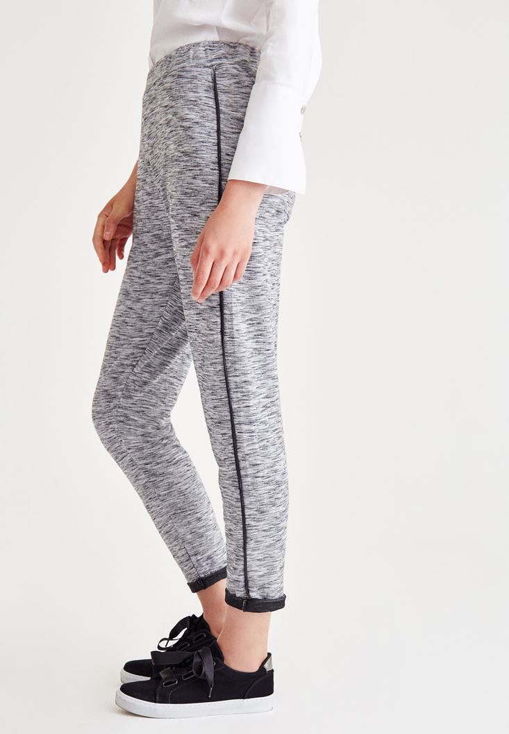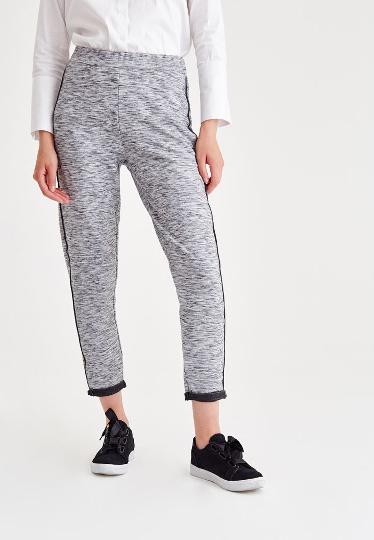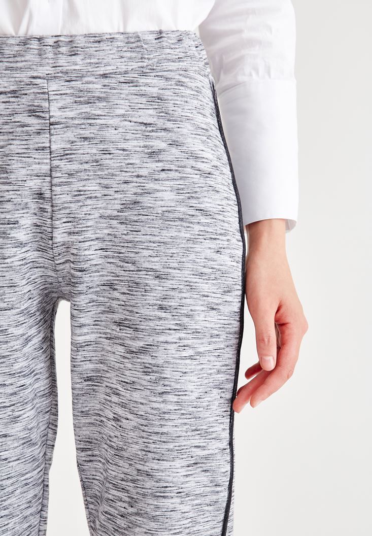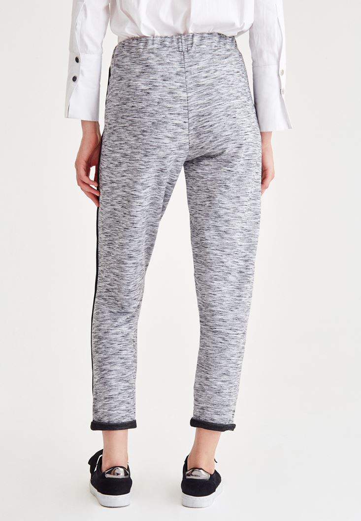 • Bayan Gri Şerit Detaylı Bol Pantolon