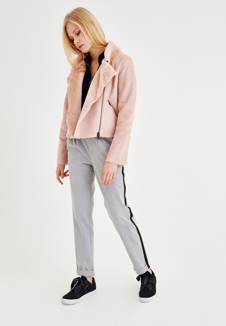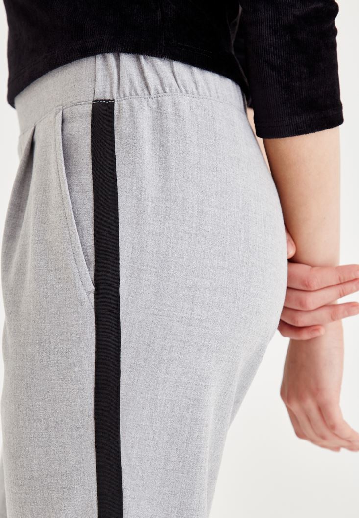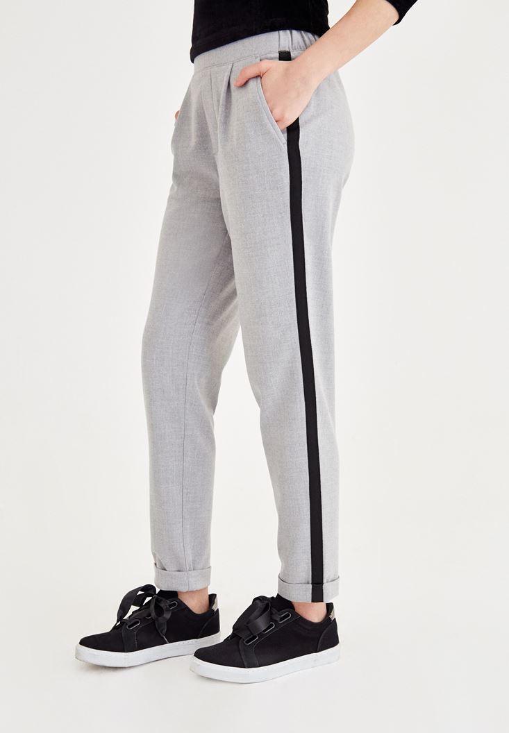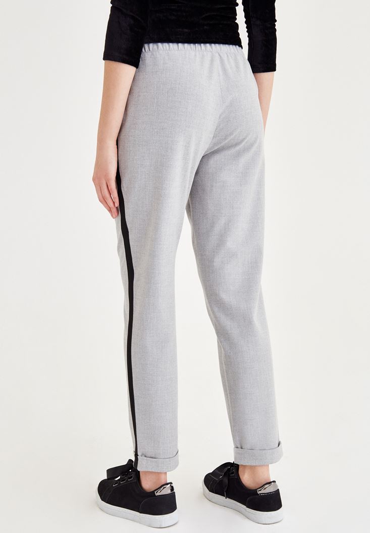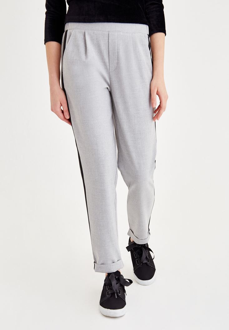 • Bayan Gri Şerit Detaylı Cepli Bol Pantolon