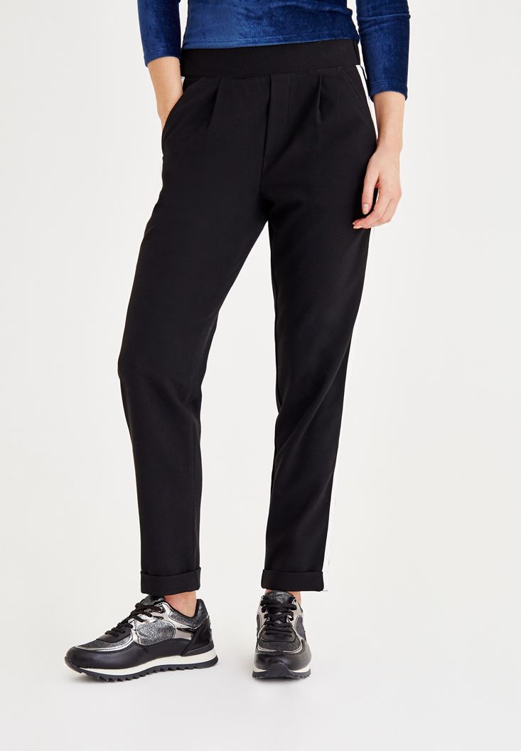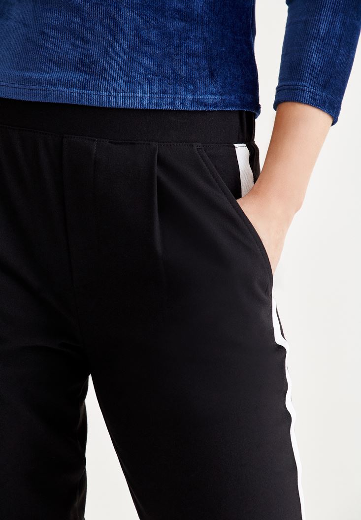 • Bayan Siyah Şerit Detaylı Cepli Bol Pantolon