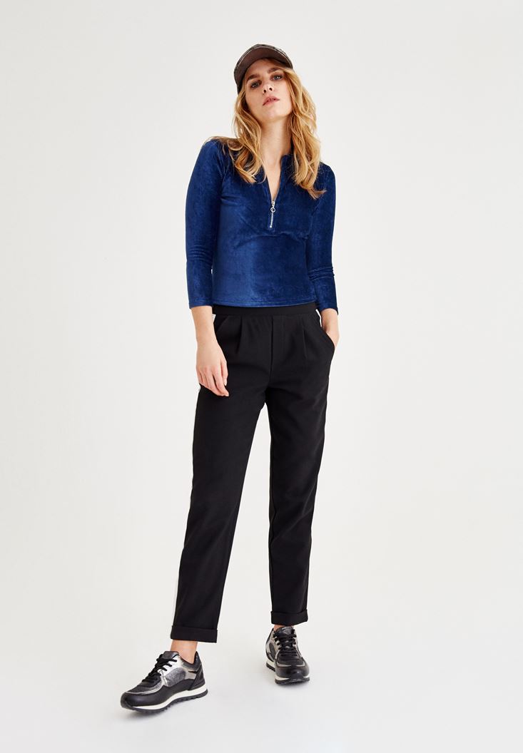 Serit detayli cepli bol pantolon farkli dokusu ve dikkat çeken kesimi ile her zaman keyifle kullanacaginiz ürünlerden birisi olacak Yumusak dokusu ile vücudunuzdan asagiya dogru oldukça dökümlü bir görünüm sunan tasarim ufak detaylardan gelen enerjisi ile dikkat çekiyor. Kalin bel kemeri ile vücudunuza basarili bir sekilde uyum saglayan pantolon modelinin kemer detayindan baslayan pililer tasarima hareket kazandiriyor. Viskon dokusu ile kullanim konforu sunan tasarim ayni zamanda bu dokunun yüksek nem emiciligi sayesinde en uzun günlerde bile konfor elde etmenize yardimci oluyor. OXXO’nun konforu ve sikligi bir araya getiren pantolon modelleri arasinda yer alan tasarim serit detaylari ve lastikli arka bel kismi ile size dikkat çekici bir özgürlük sunacak.