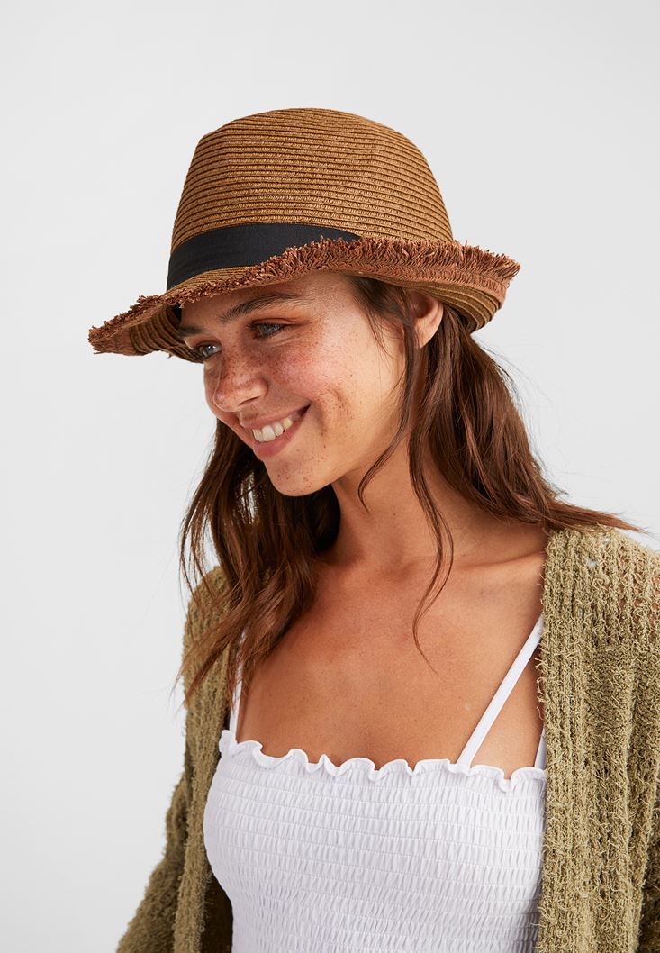 Kahverengi Şeritlı Hasır Şapka