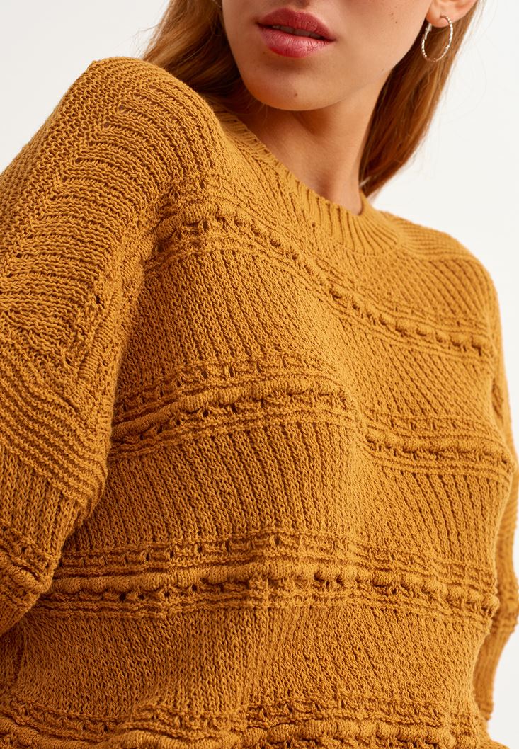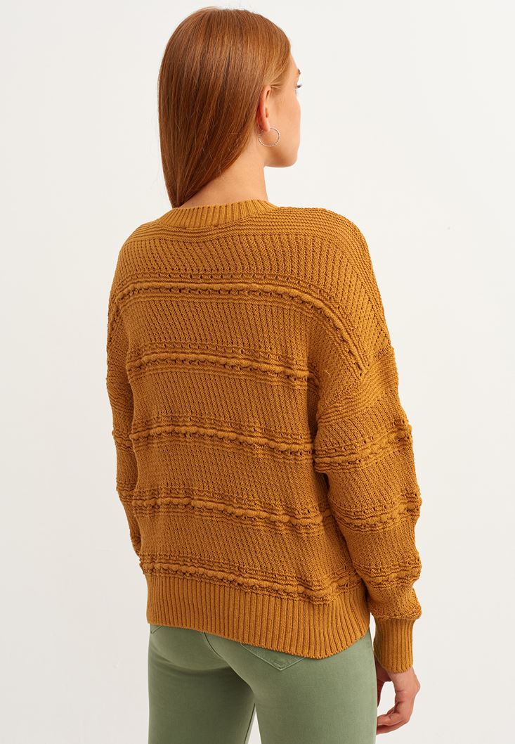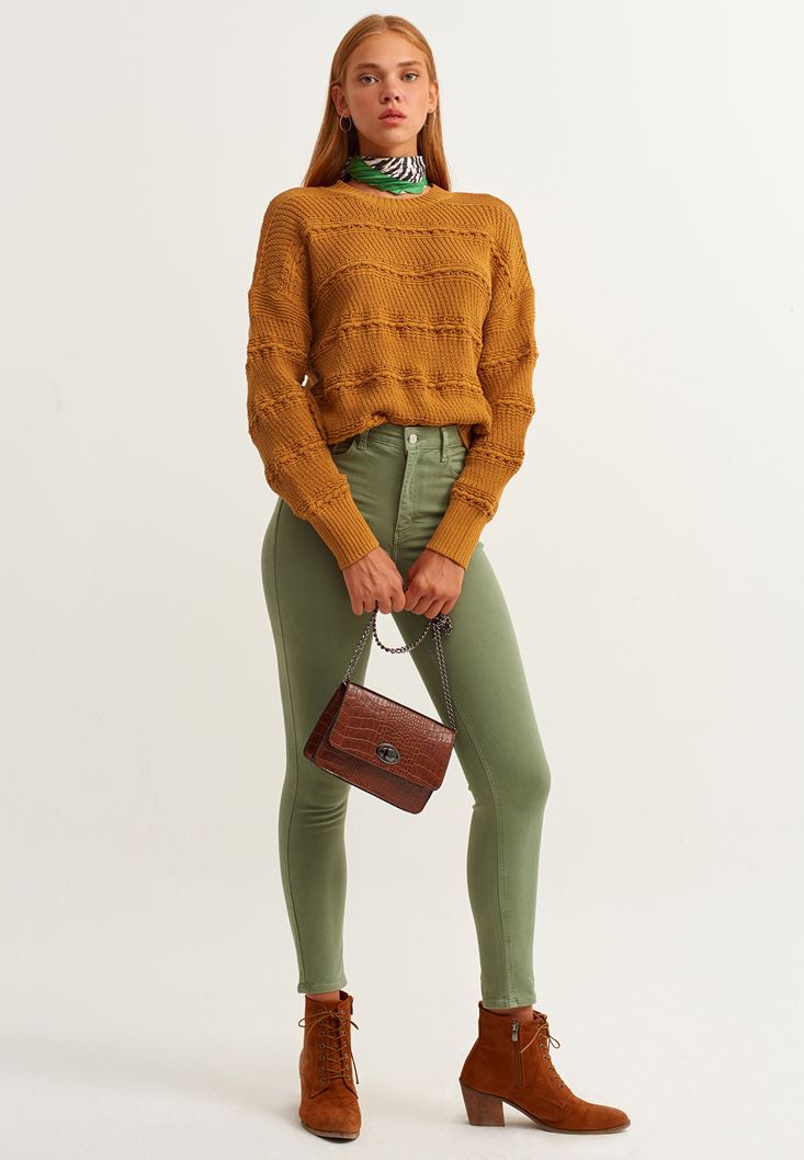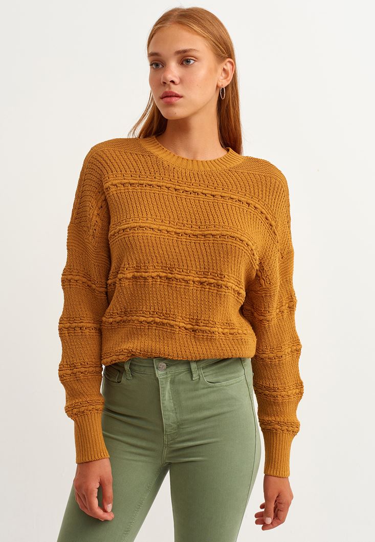 • Bayan Turuncu Sıfır Yaka Ajurlu Triko
