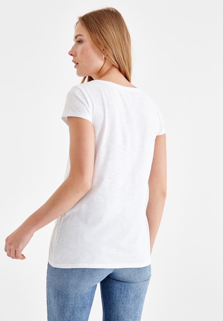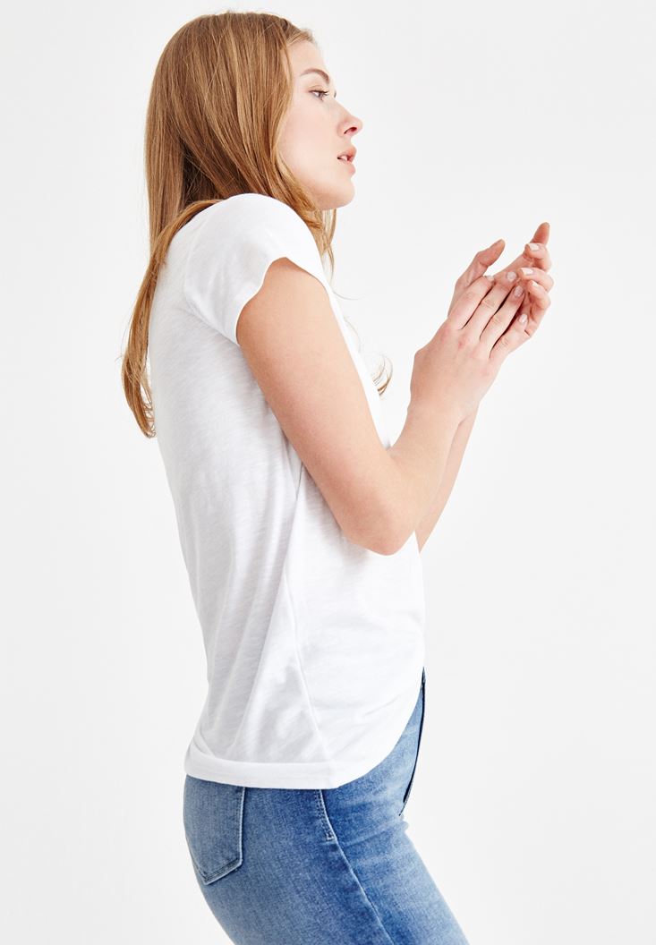 • Bayan Beyaz Sıfır Yaka Basic Tişört