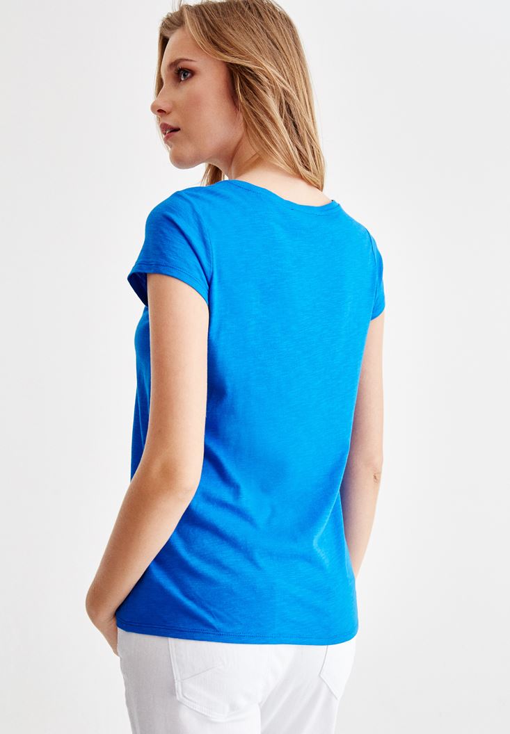 • Bayan Mavi Sıfır Yaka Basic Tişört